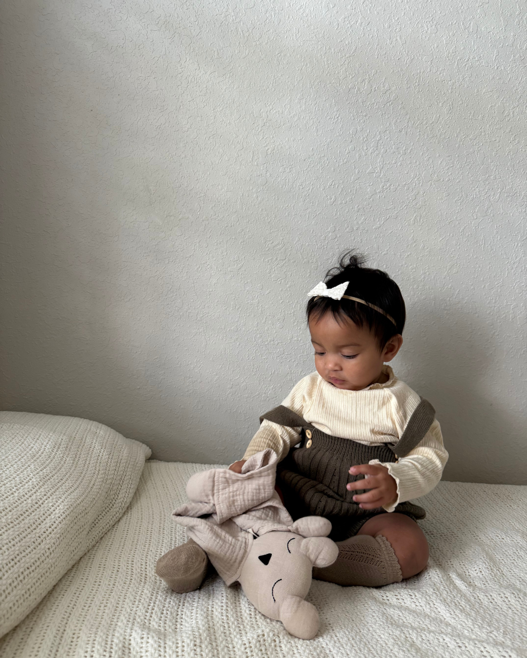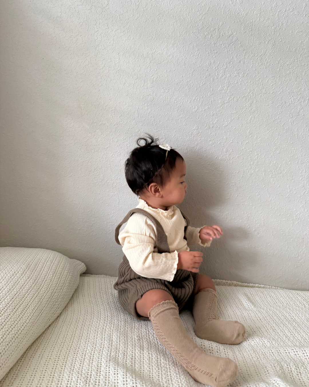 伸縮性のある素材で動きやすく、赤ちゃんのデイリーコーデにぴったり。