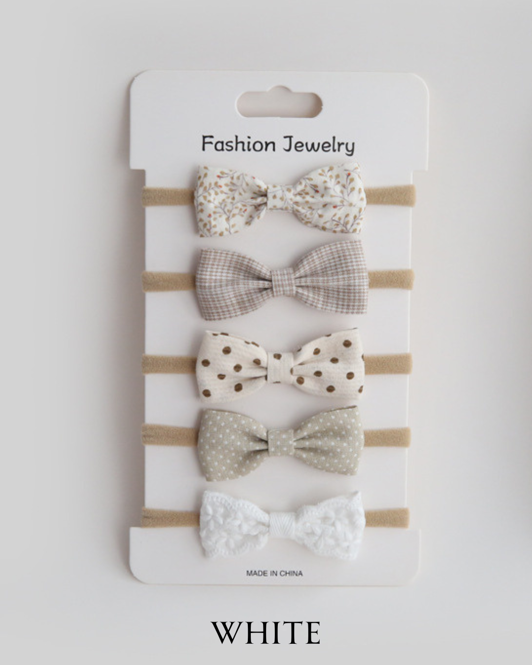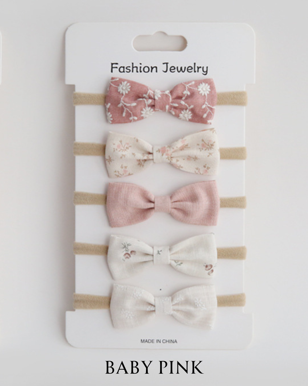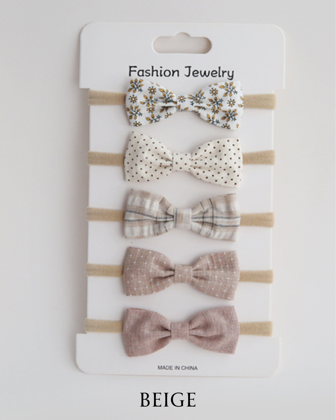 やさしい色味とナチュラルな柄が可愛いリボンヘアバンドの5点セットです。伸縮性のあるバンドで赤ちゃんの頭にやさしくフィットし、長時間つけても快適。お洋服に合わせてコーディネートを楽しめるデザインで、普段使いはもちろんギフトにもおすすめです♡シンプルで上品な雰囲気なので、どんなシーンでも活躍してくれます♡