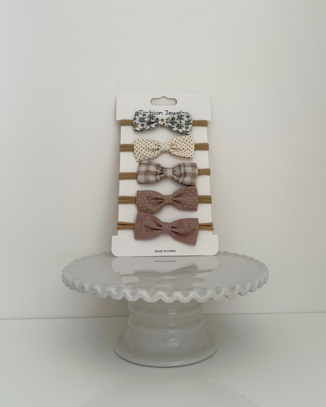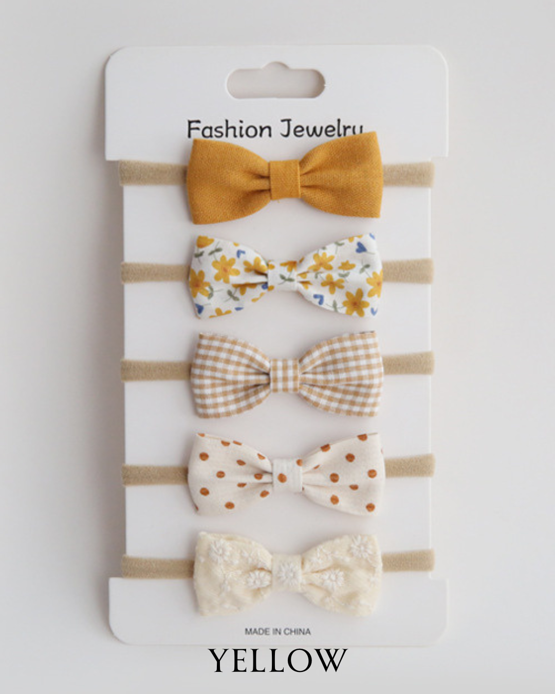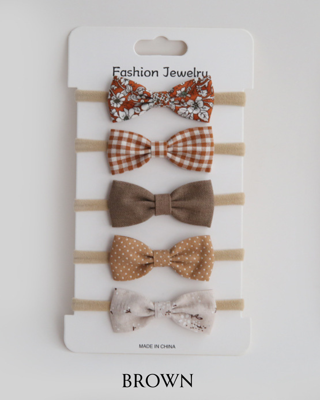 やさしい色味とナチュラルな柄が可愛いリボンヘアバンドの5点セットです。伸縮性のあるバンドで赤ちゃんの頭にやさしくフィットし、長時間つけても快適。お洋服に合わせてコーディネートを楽しめるデザインで、普段使いはもちろんギフトにもおすすめです♡シンプルで上品な雰囲気なので、どんなシーンでも活躍してくれます♡