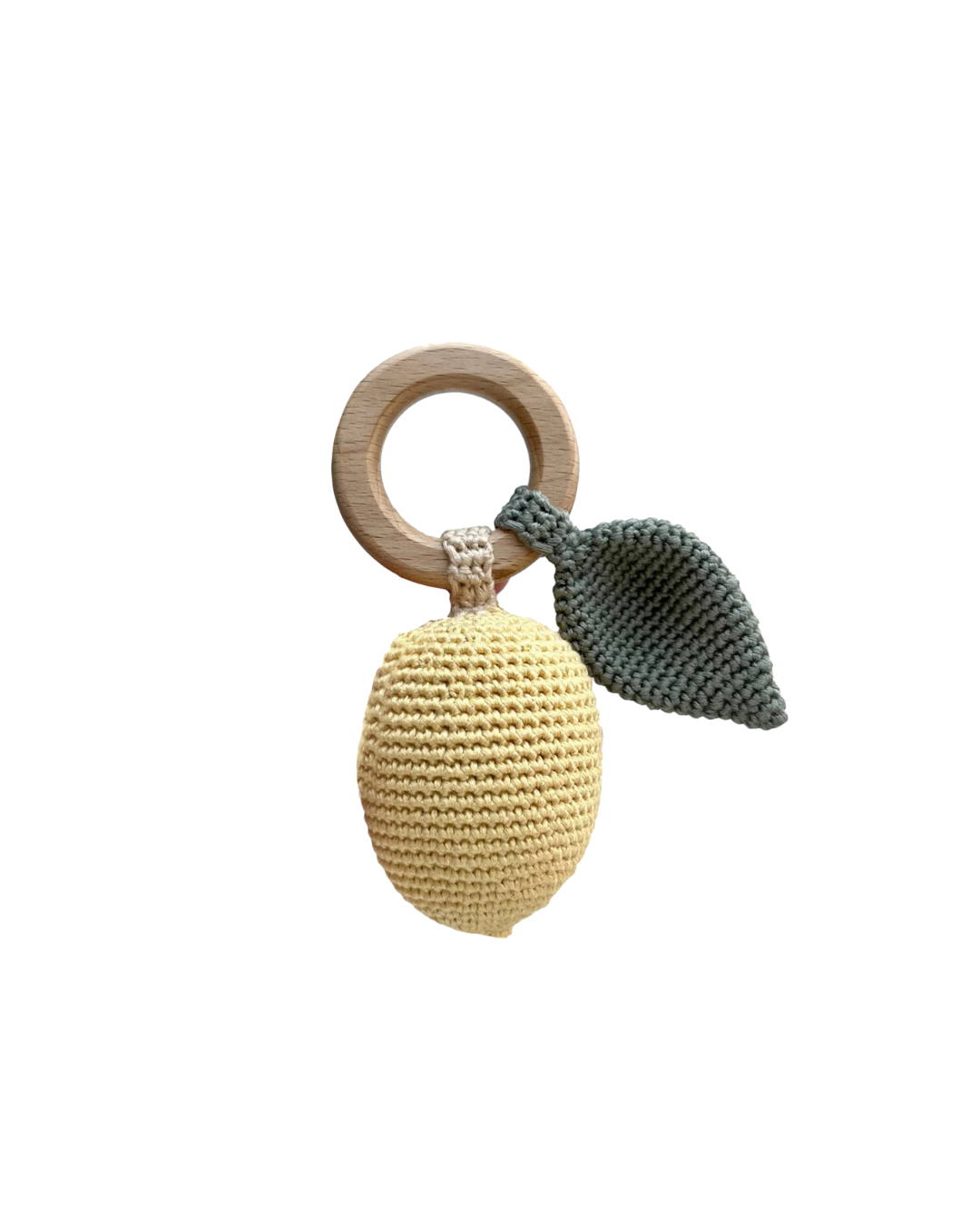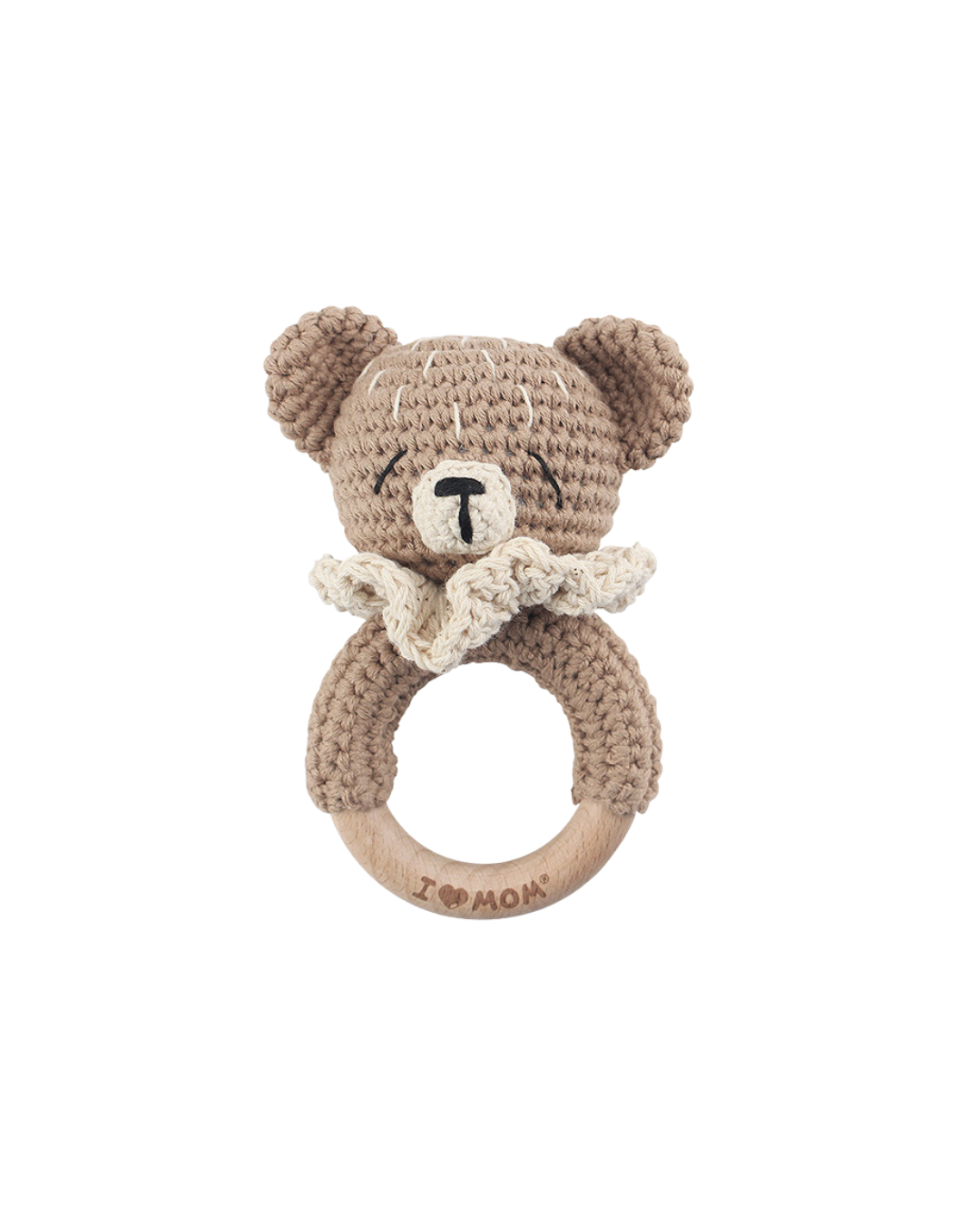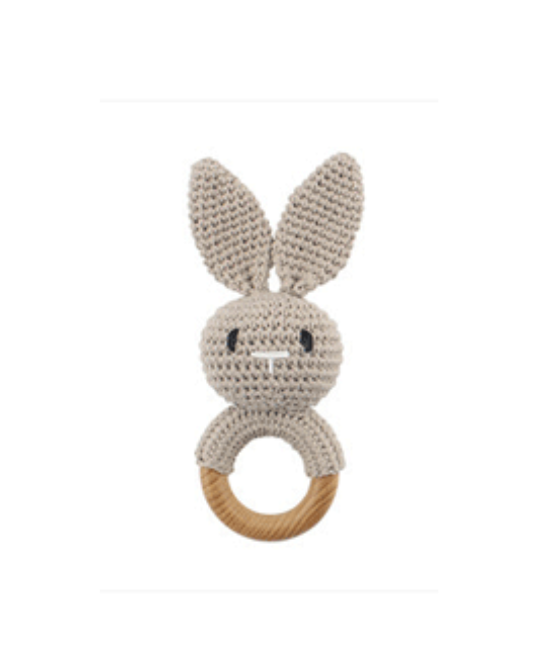 木製のリングは赤ちゃんの小さな手でも握りやすく、振るとやさしい音が鳴ります。