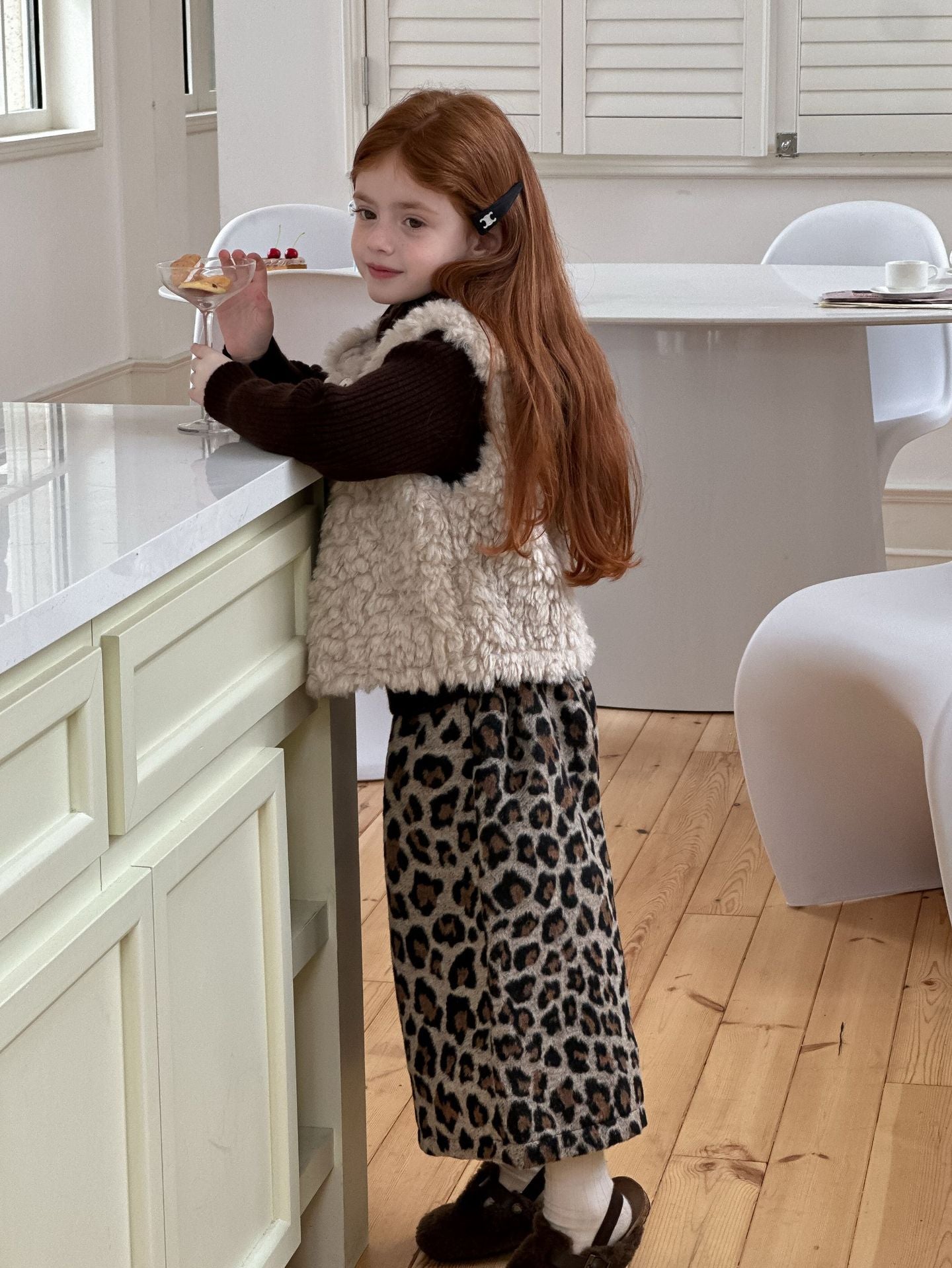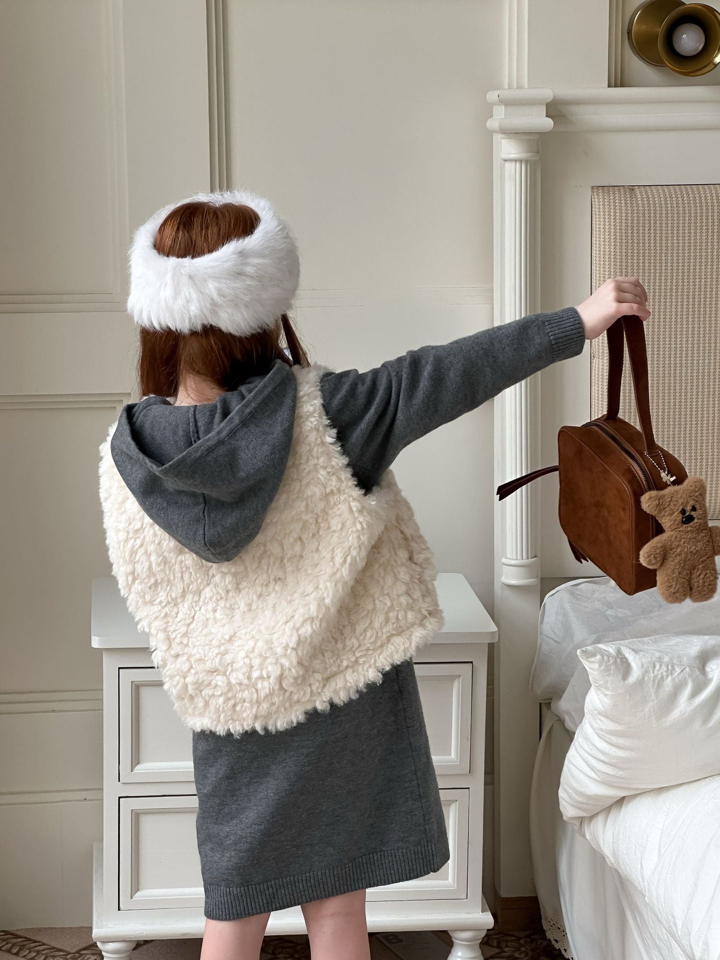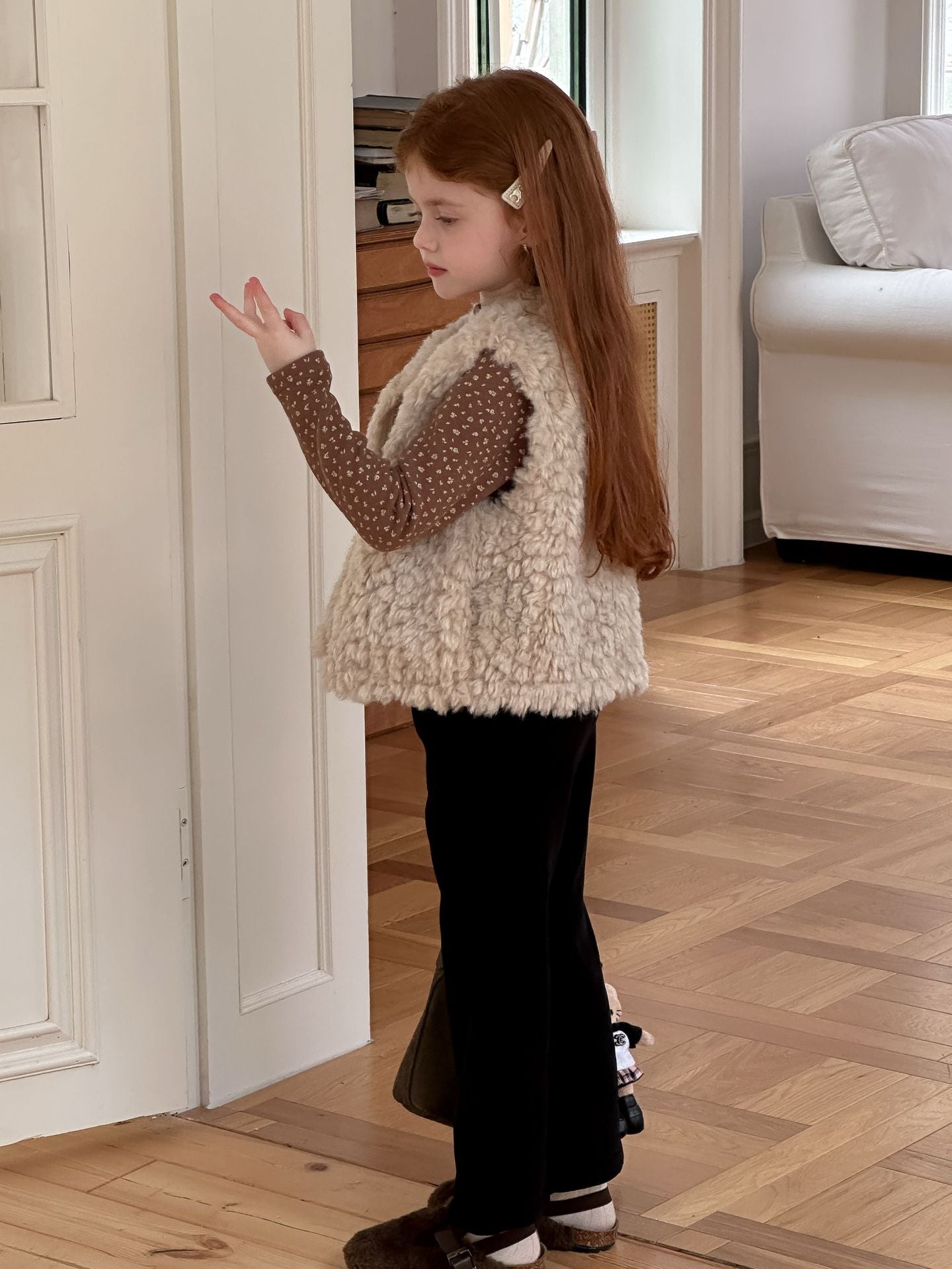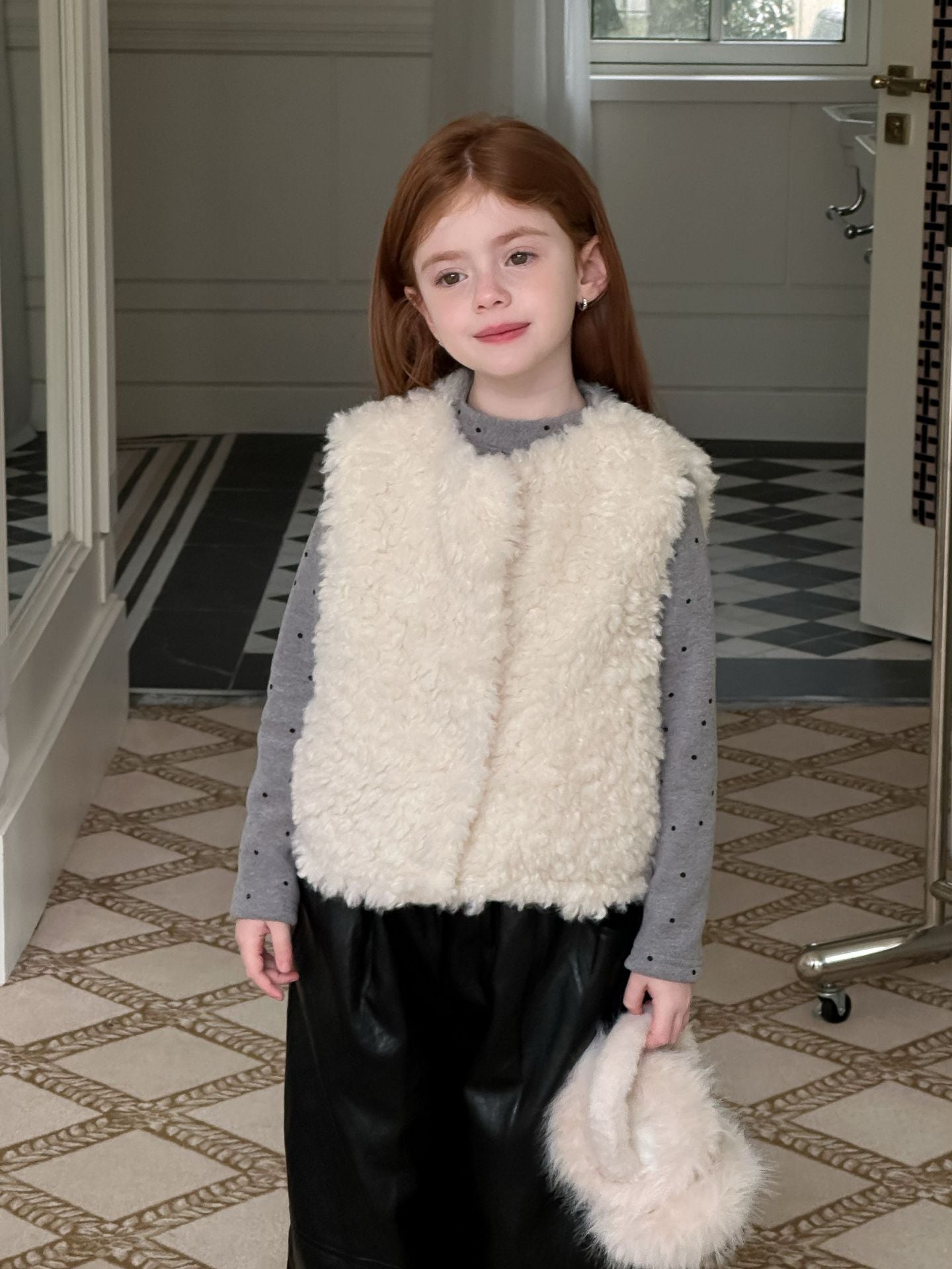 ふんわりとしたボアフリース素材を使用した、軽やかで暖かいベビーベスト。