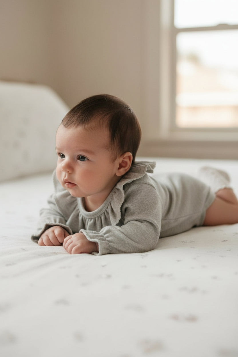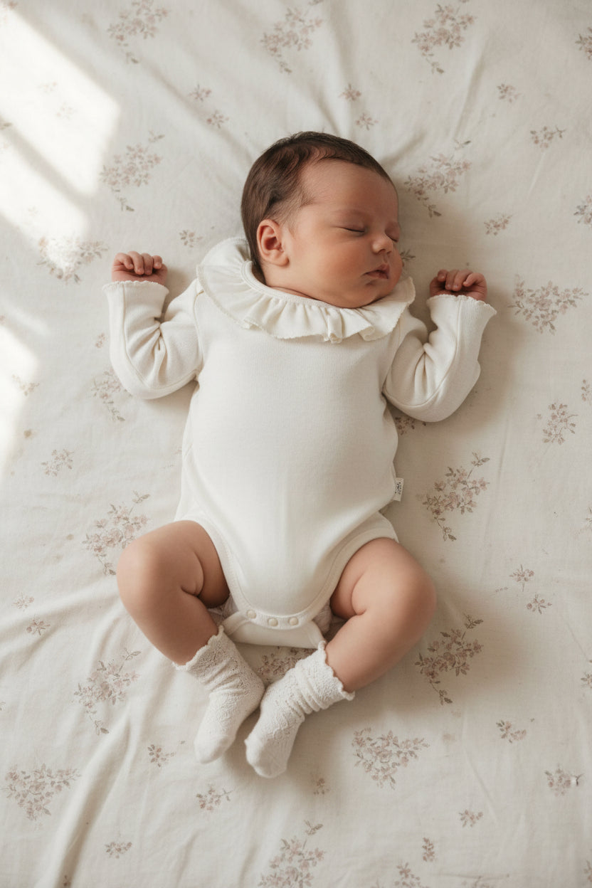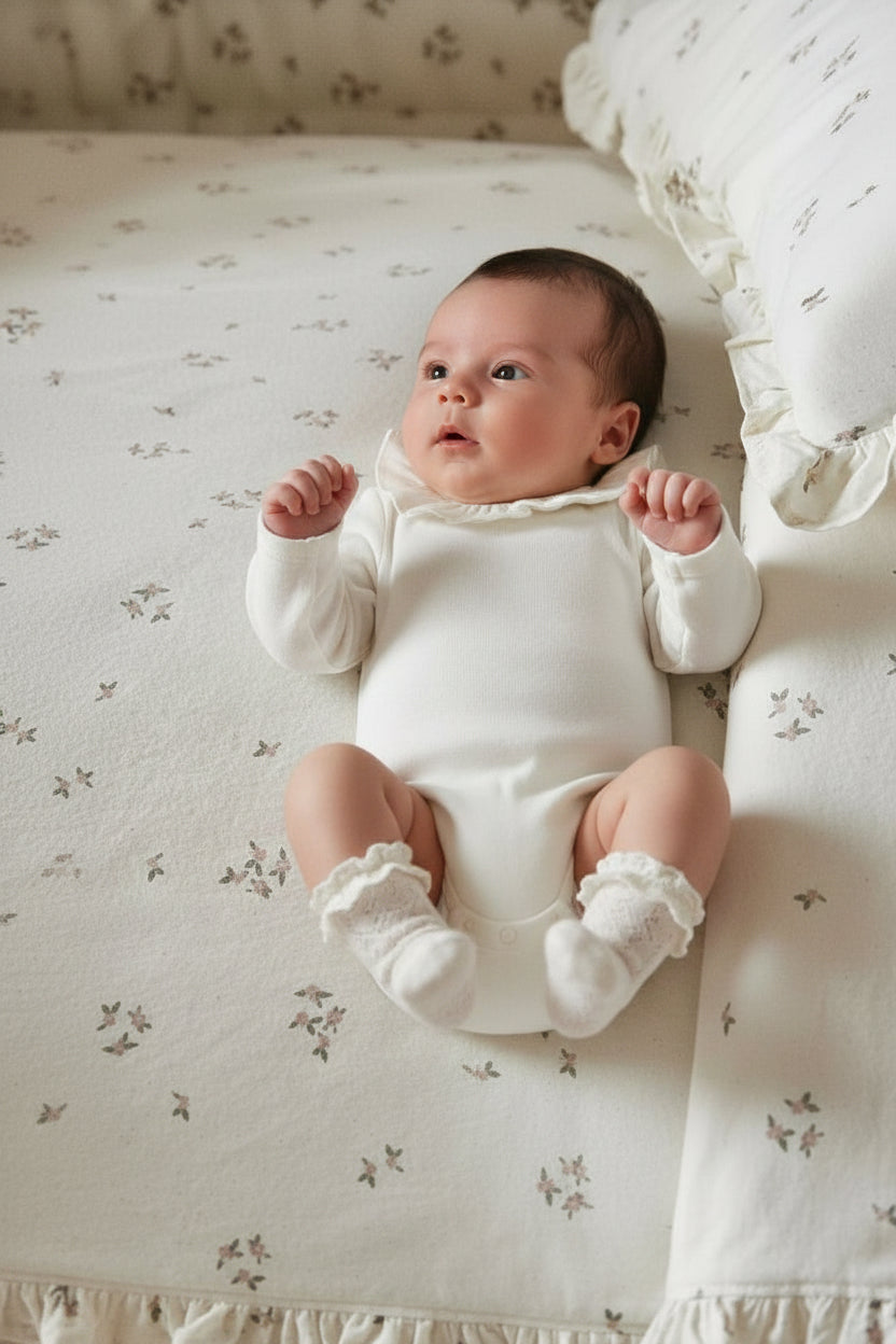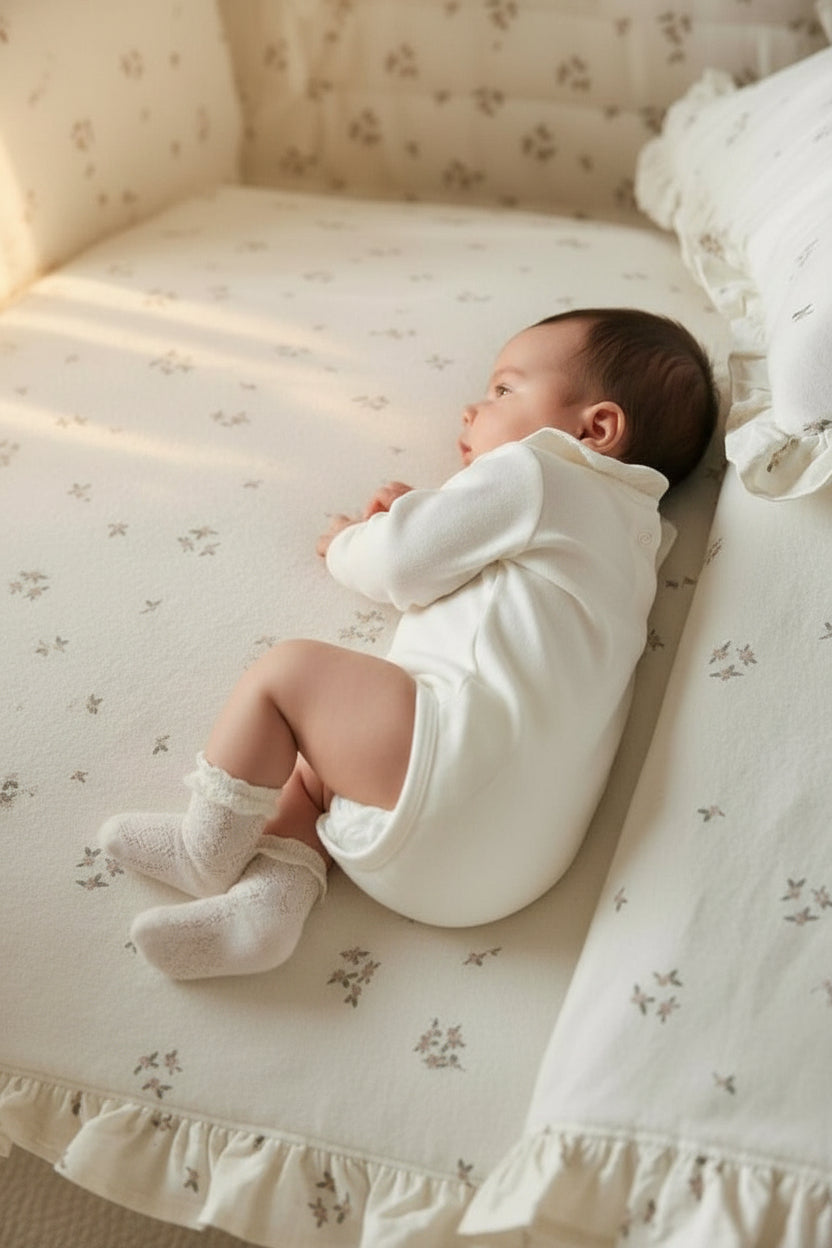柔らかなコットン素材を使用し、赤ちゃんの肌にやさしい着心地。