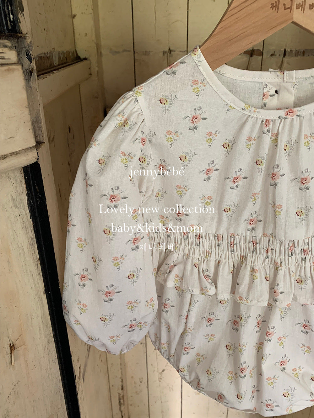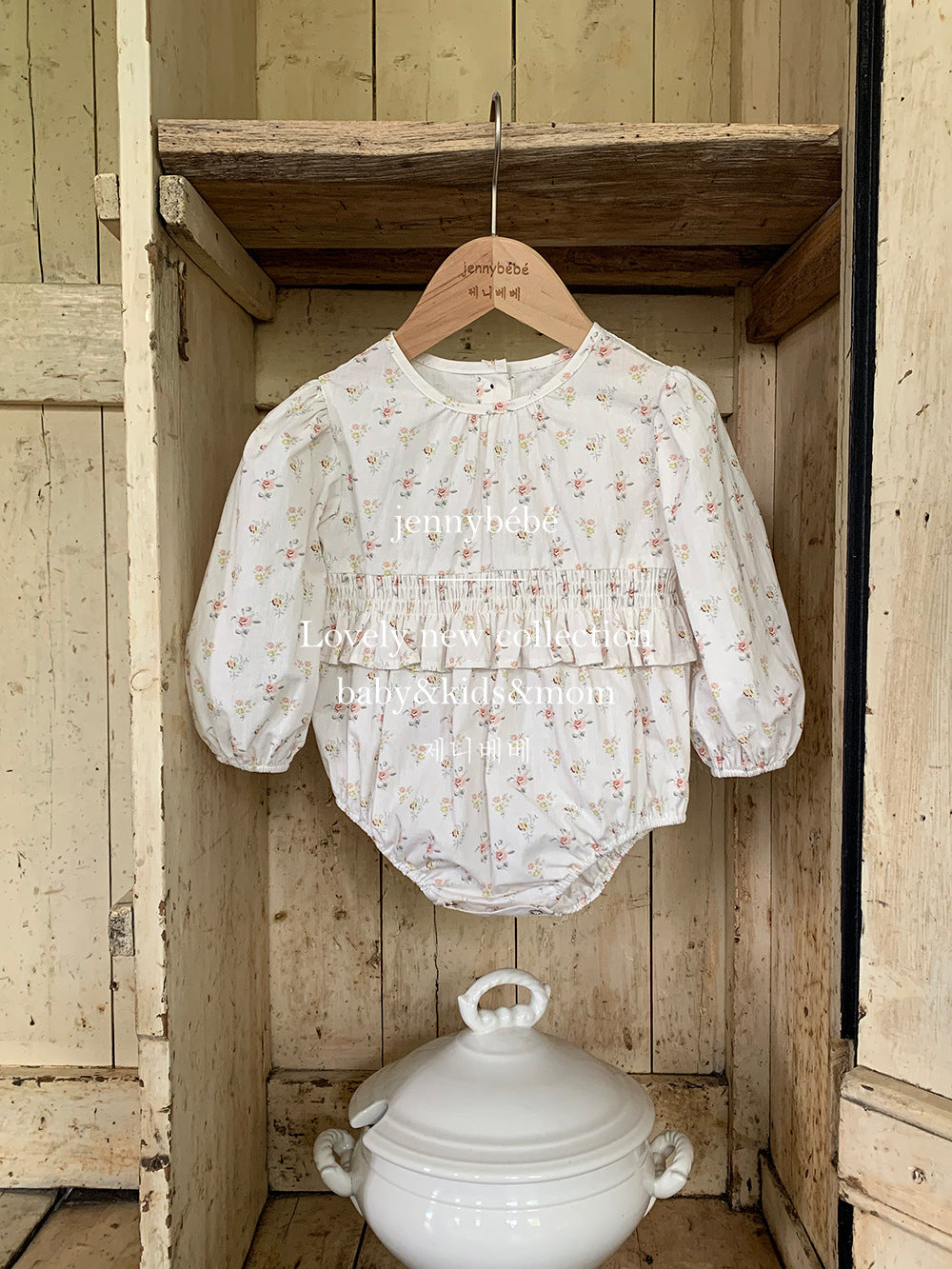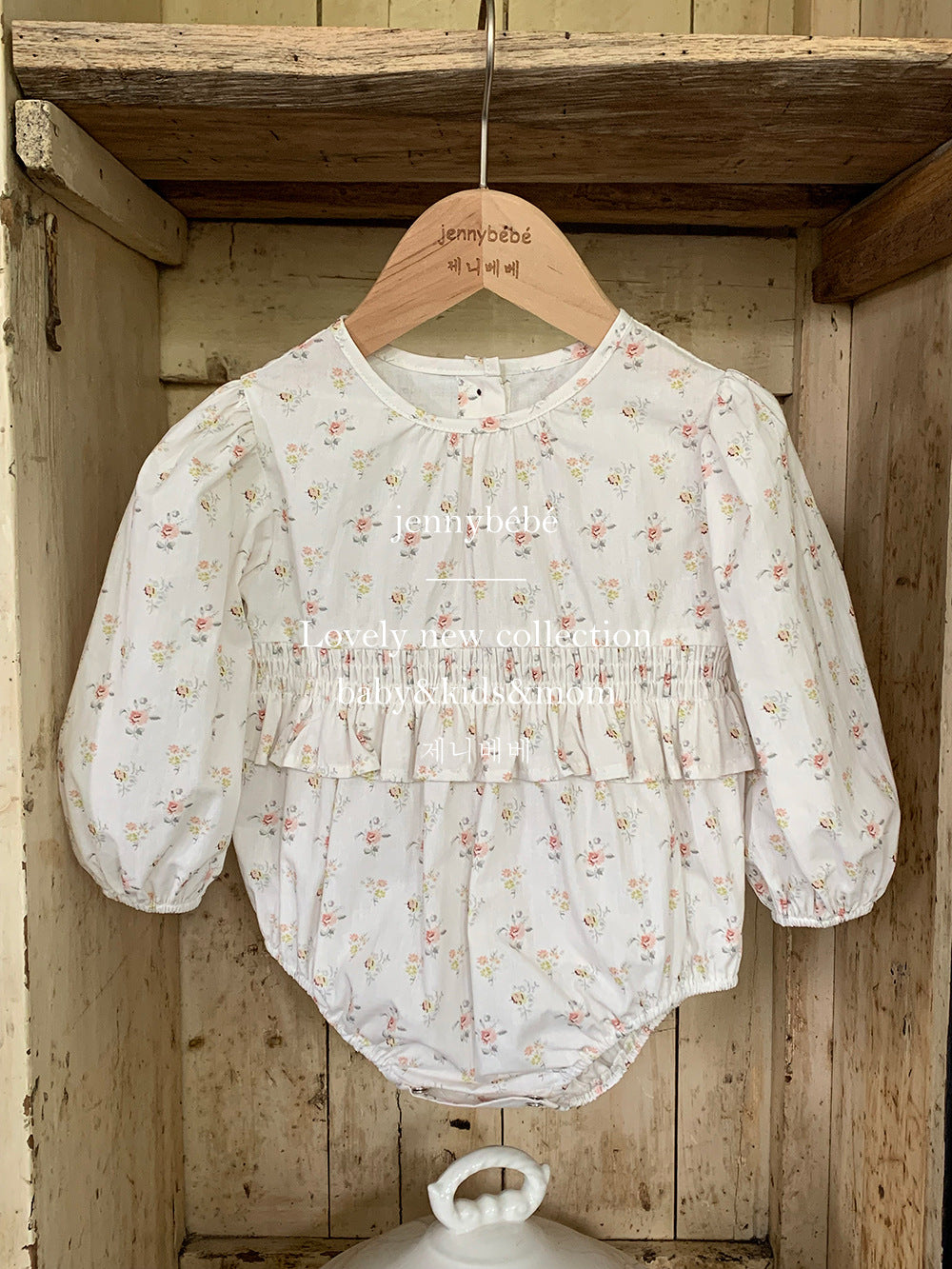 ロンパースは丸みのあるシルエットとふんわりとした袖で、赤ちゃんらしい愛らしさを引き立てるデザインに。