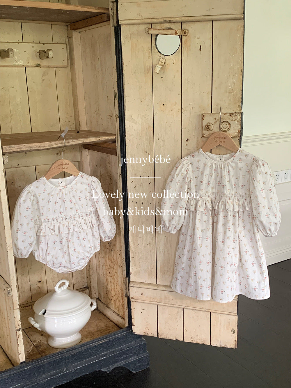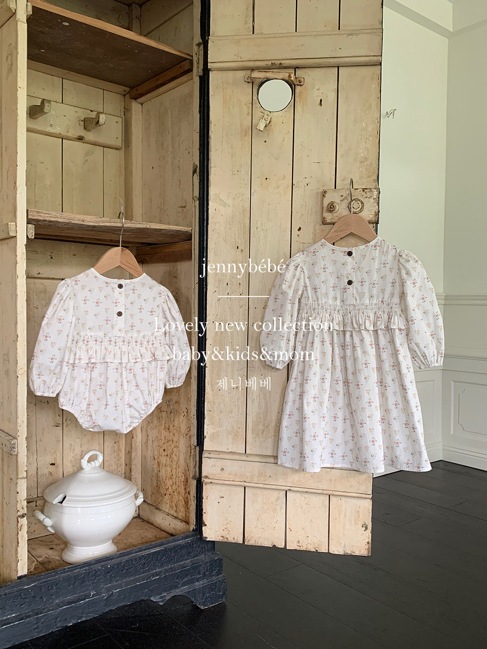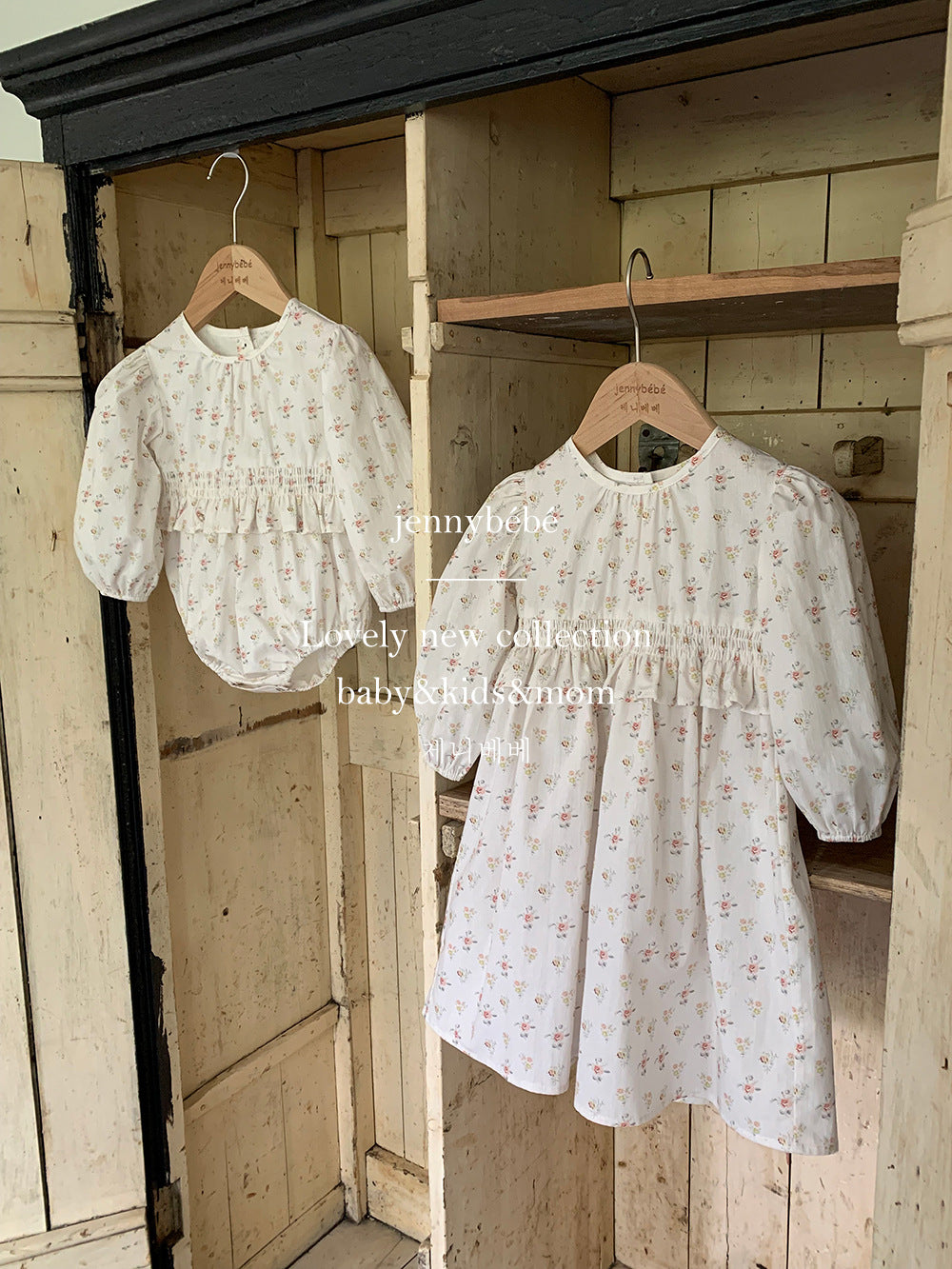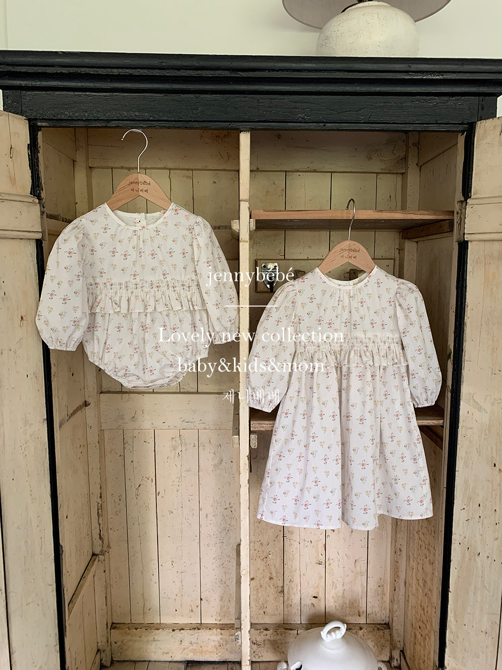 ロンパースは丸みのあるシルエットとふんわりとした袖で、赤ちゃんらしい愛らしさを引き立てるデザインに。