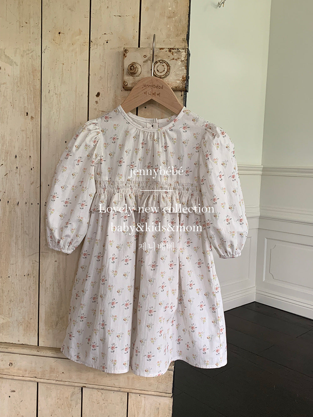 ワンピースはギャザーをたっぷりと施し、動くたびにふんわり揺れるシルエットが上品な印象に仕上がっています。