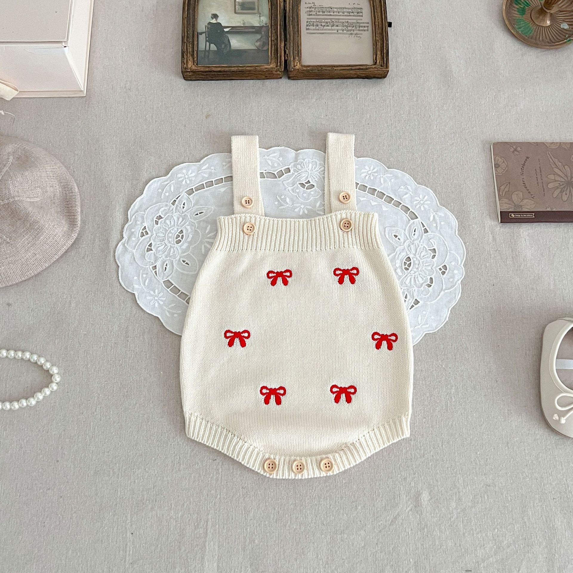 カーディガンとロンパースのセットアイテム。