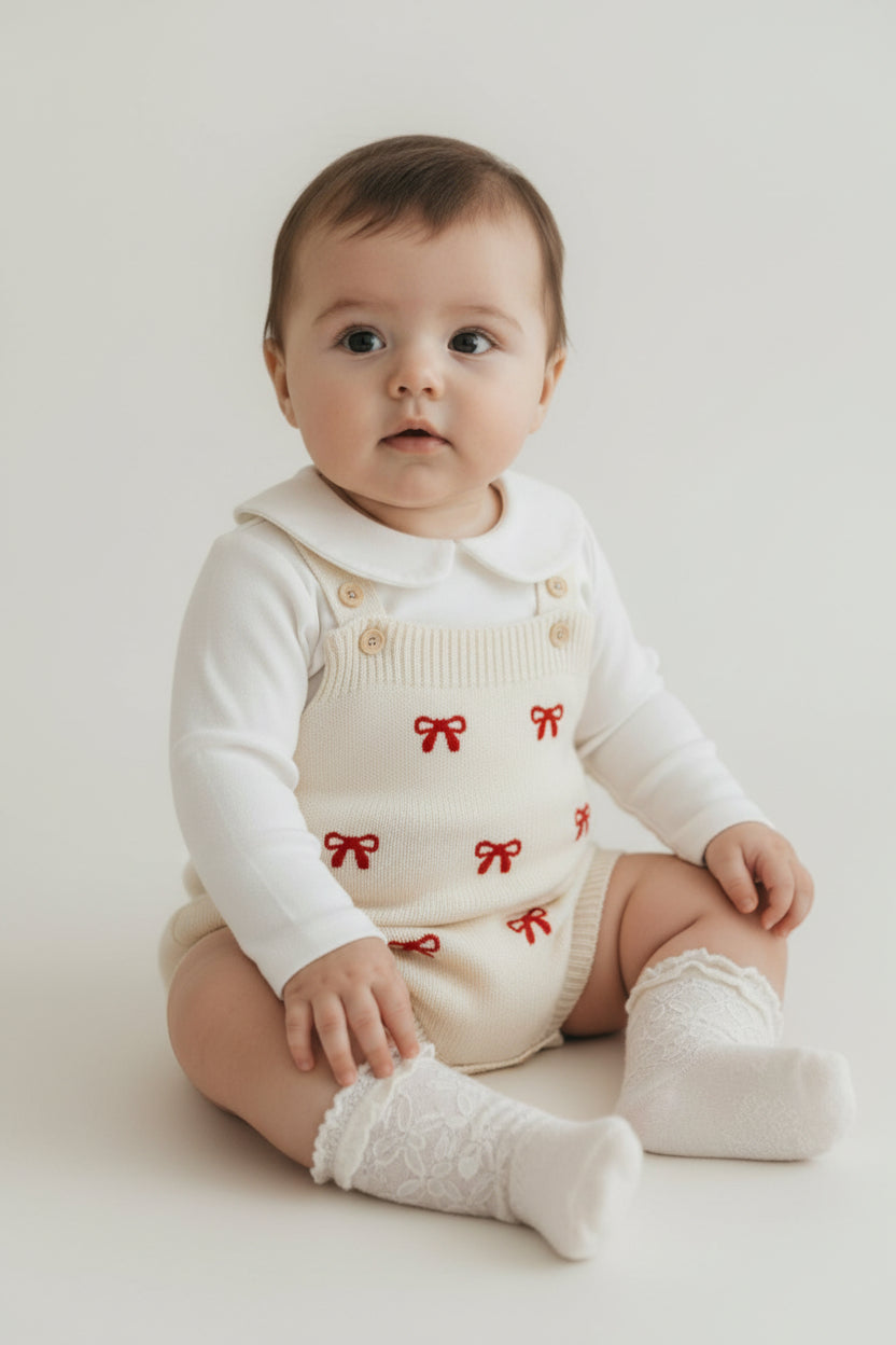 ロンパースはころんとしたシルエットで、