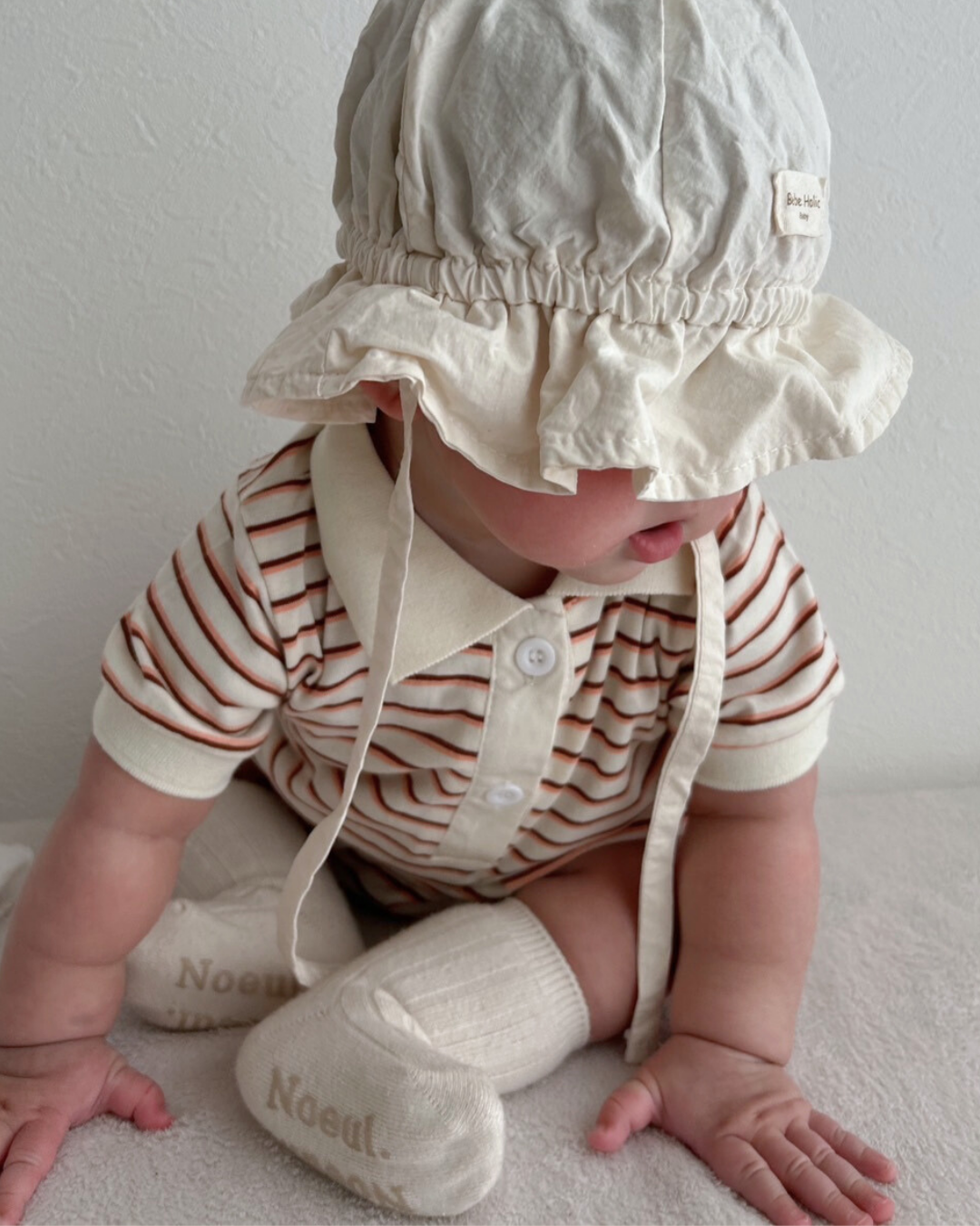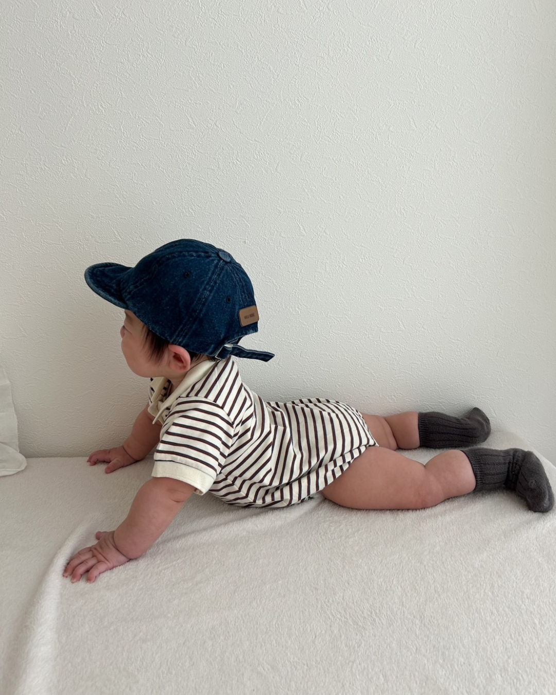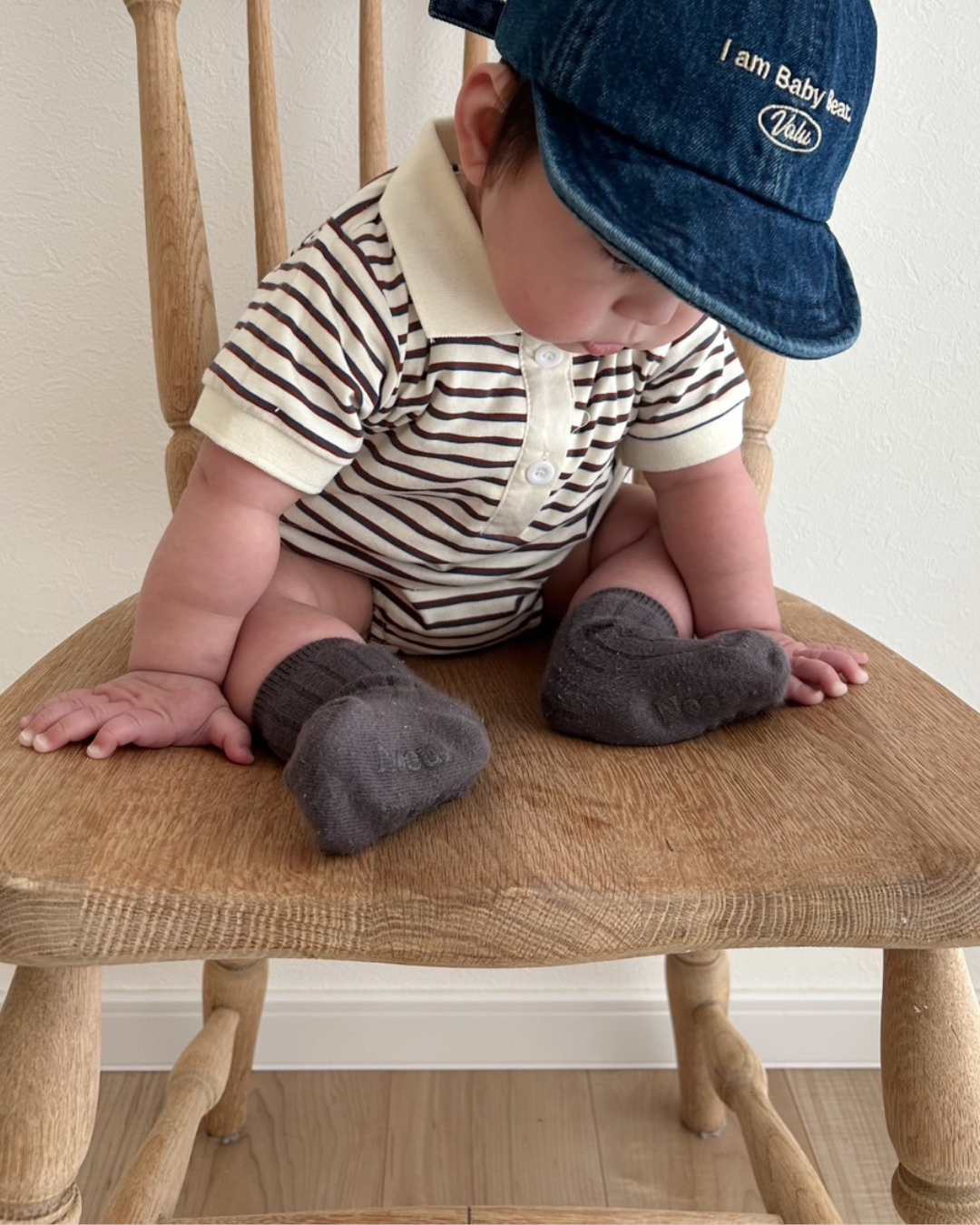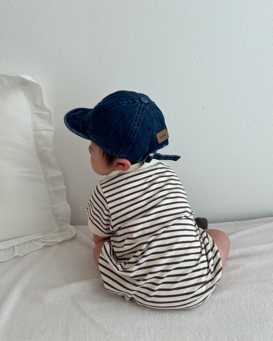 おしゃれでクラシックなデザインが魅力のボーダー襟付きロンパース♡