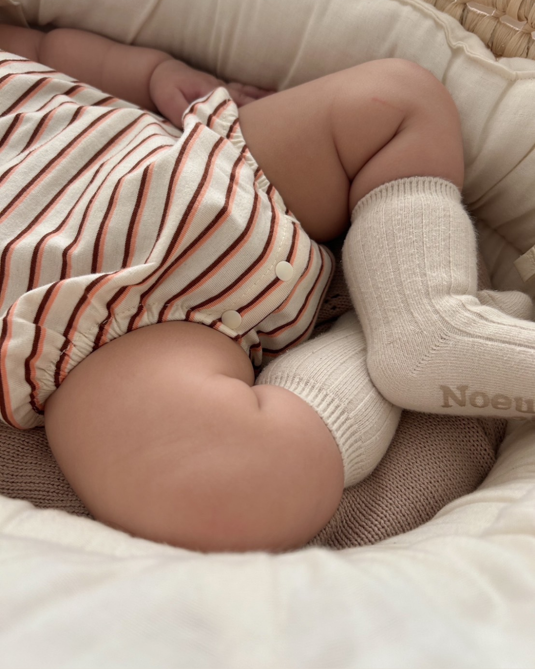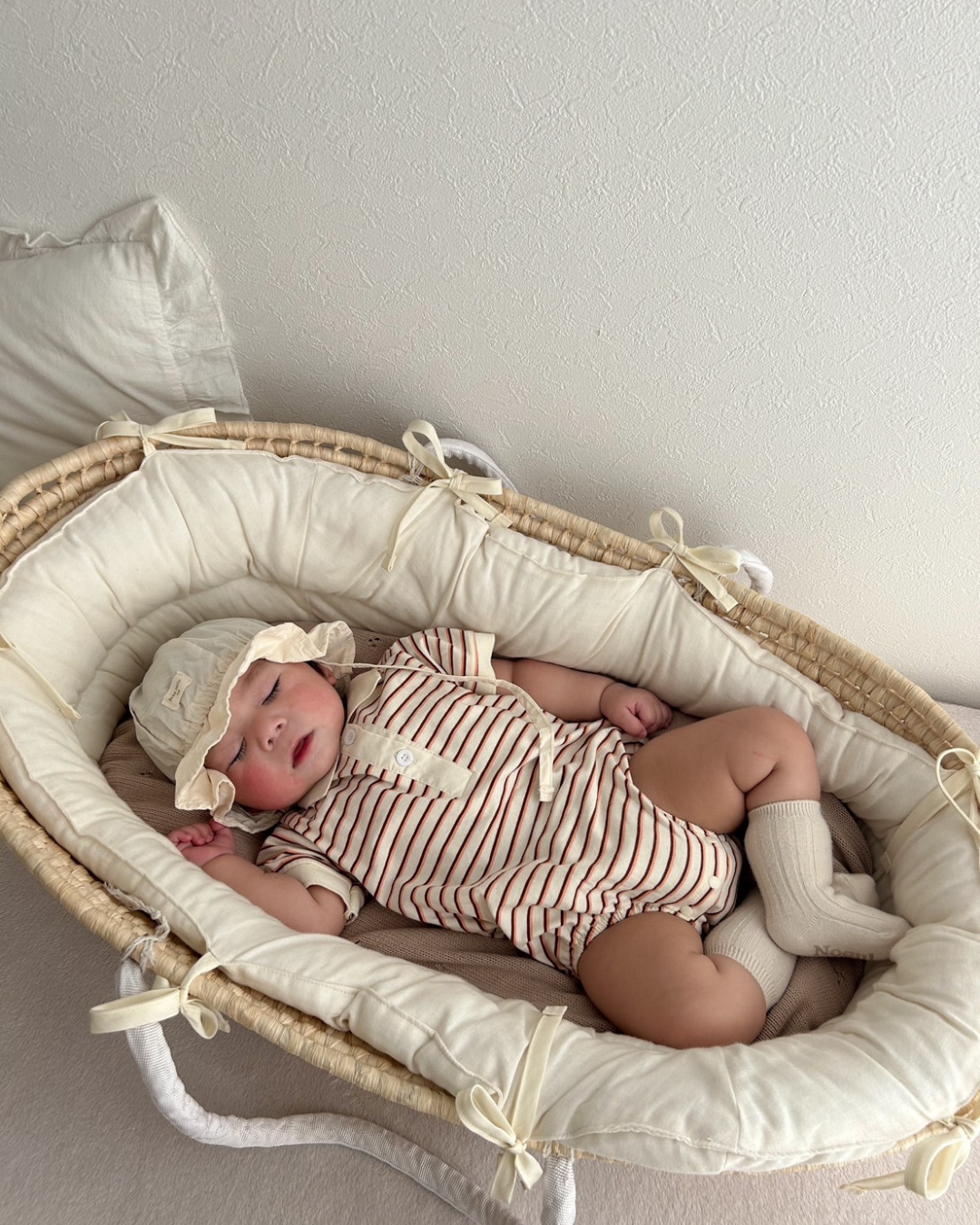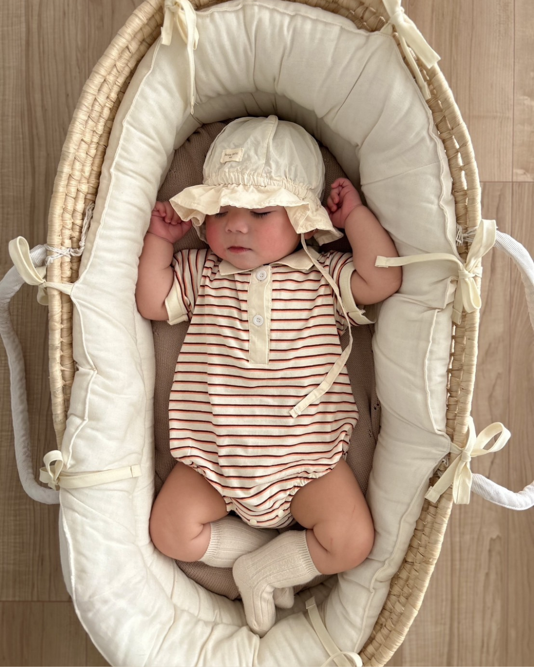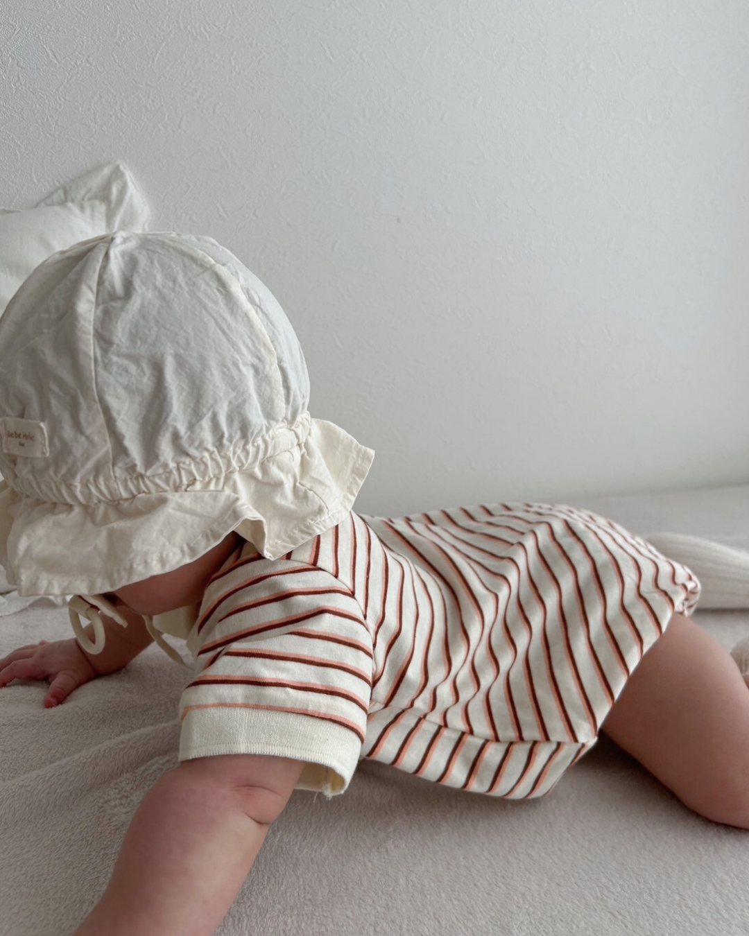 おしゃれでクラシックなデザインが魅力のボーダー襟付きロンパース♡