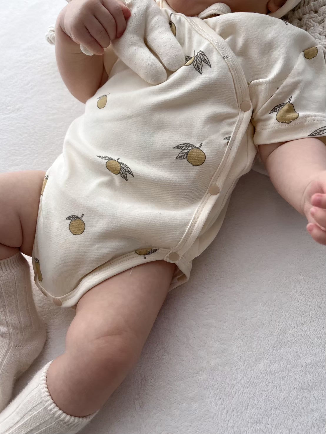 柔らかい生地で赤ちゃんにおすすめ柄もたくさんあるので色違いで欲しくなります🍋▽color オレンジ レモン チェリー ハート プラム リーフ
