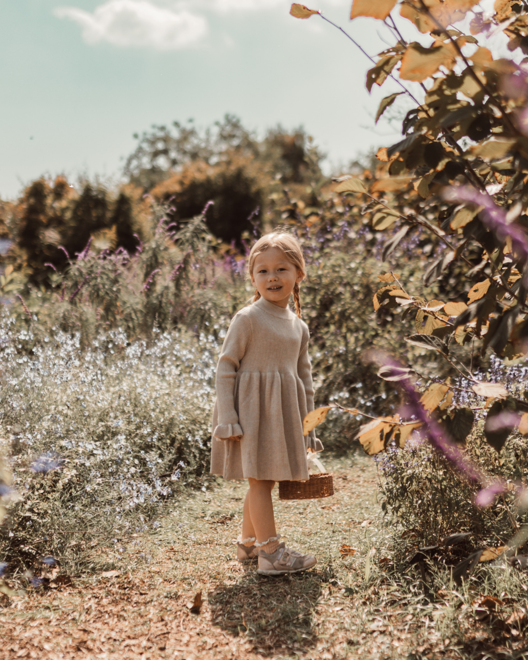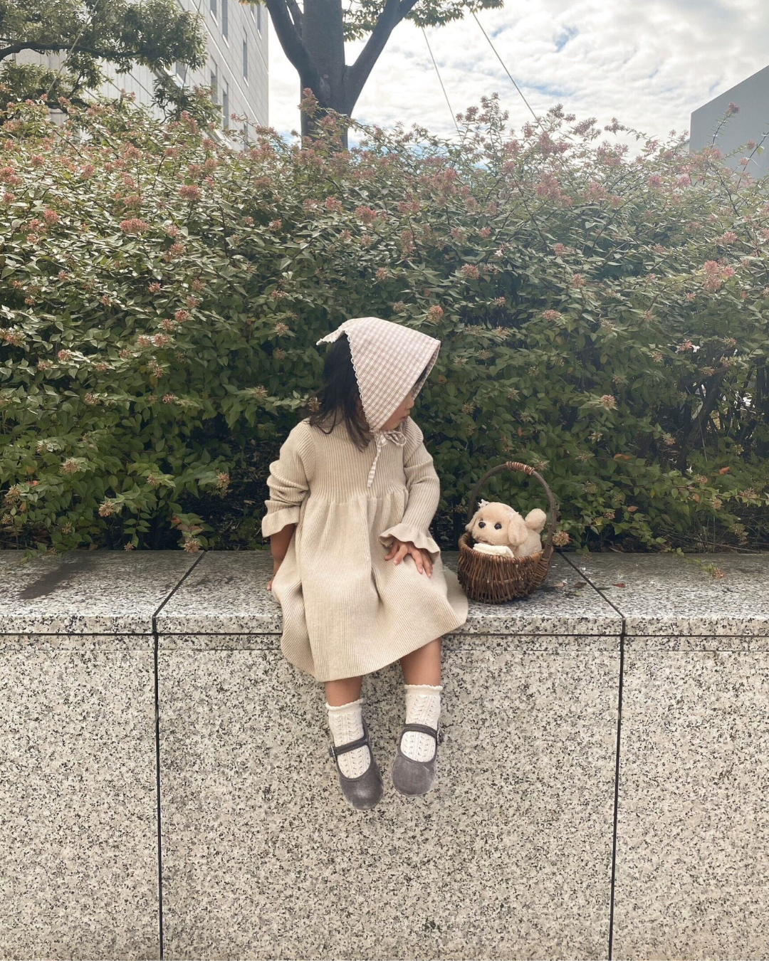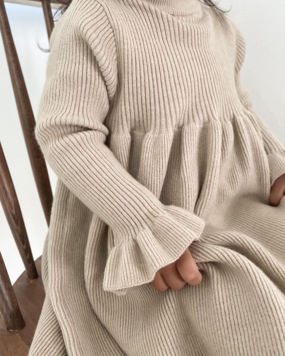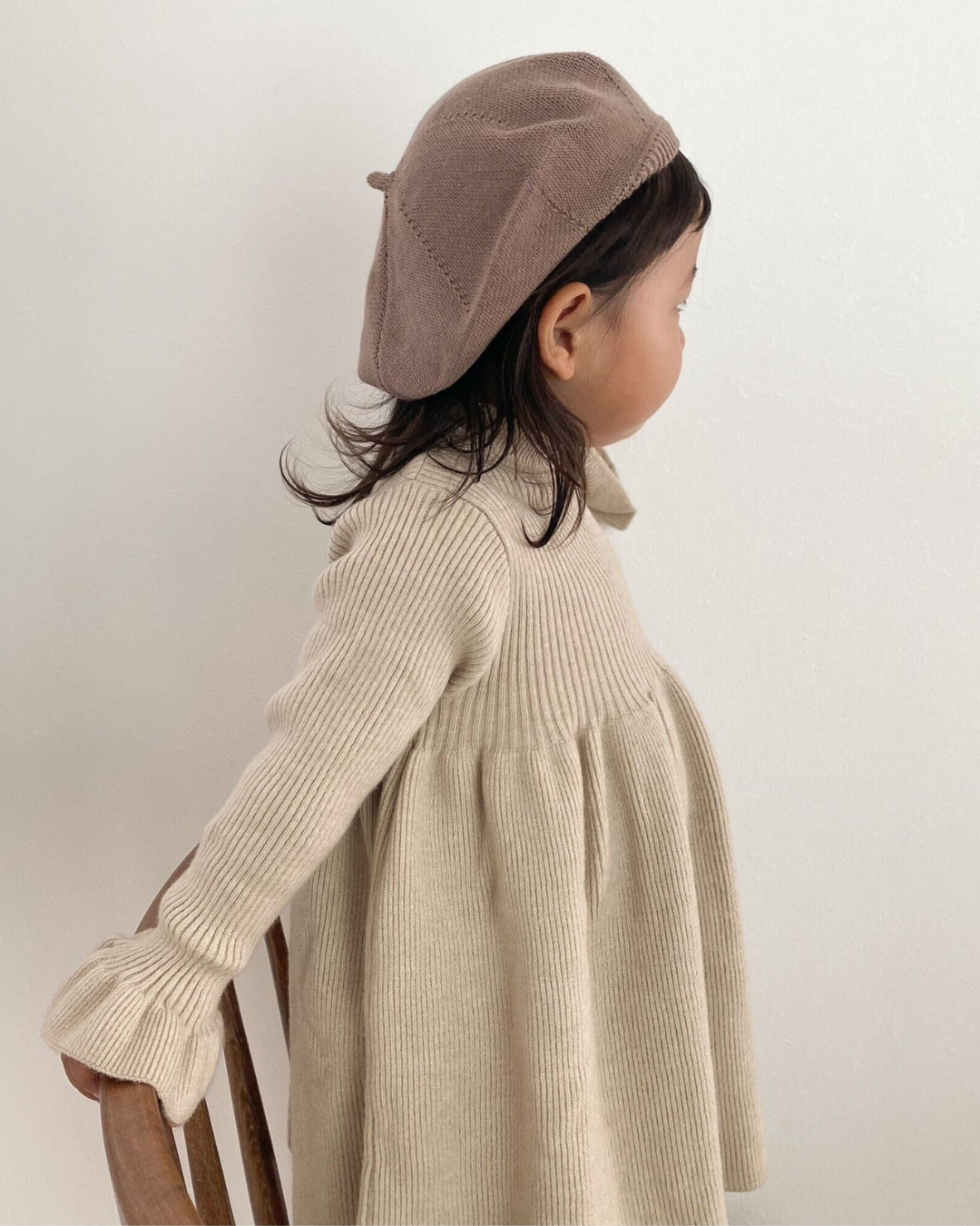 柔らかなリブ素材で仕立てた女の子らしいワンピース。ナチュラルな色合いがやさしい雰囲気を演出してくれます。