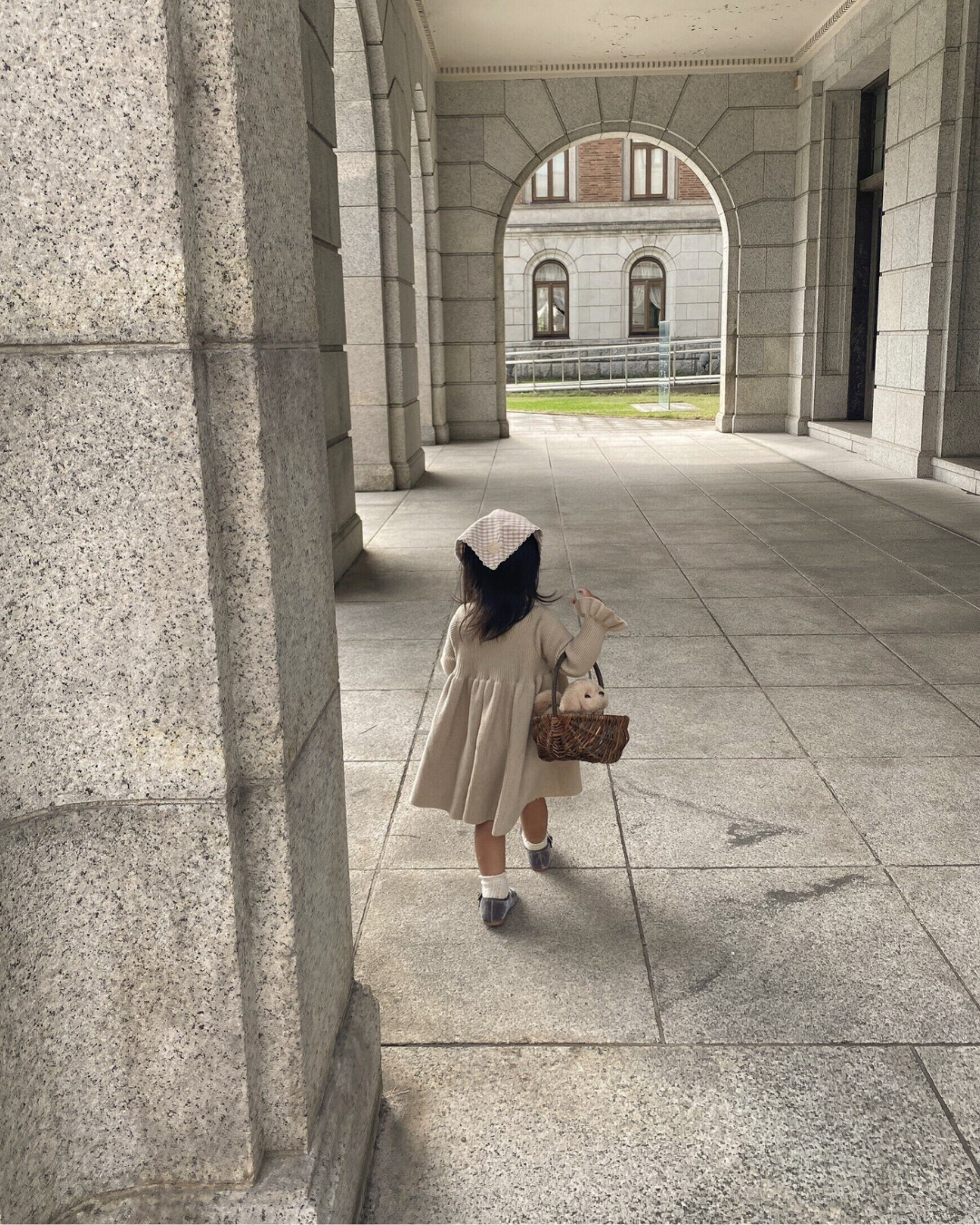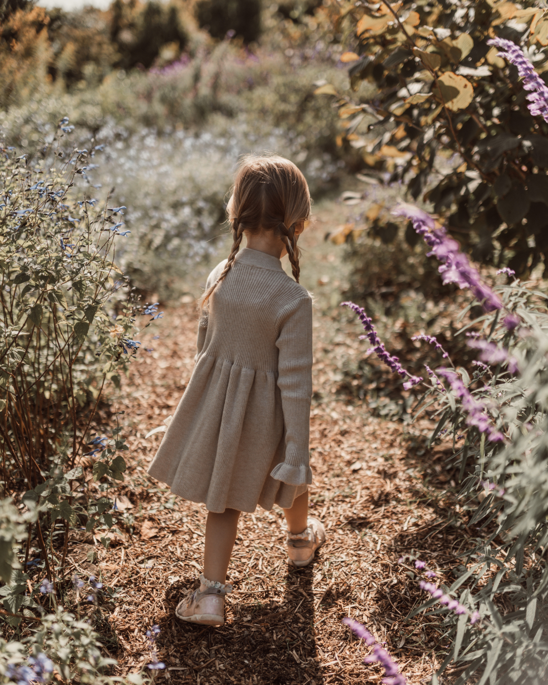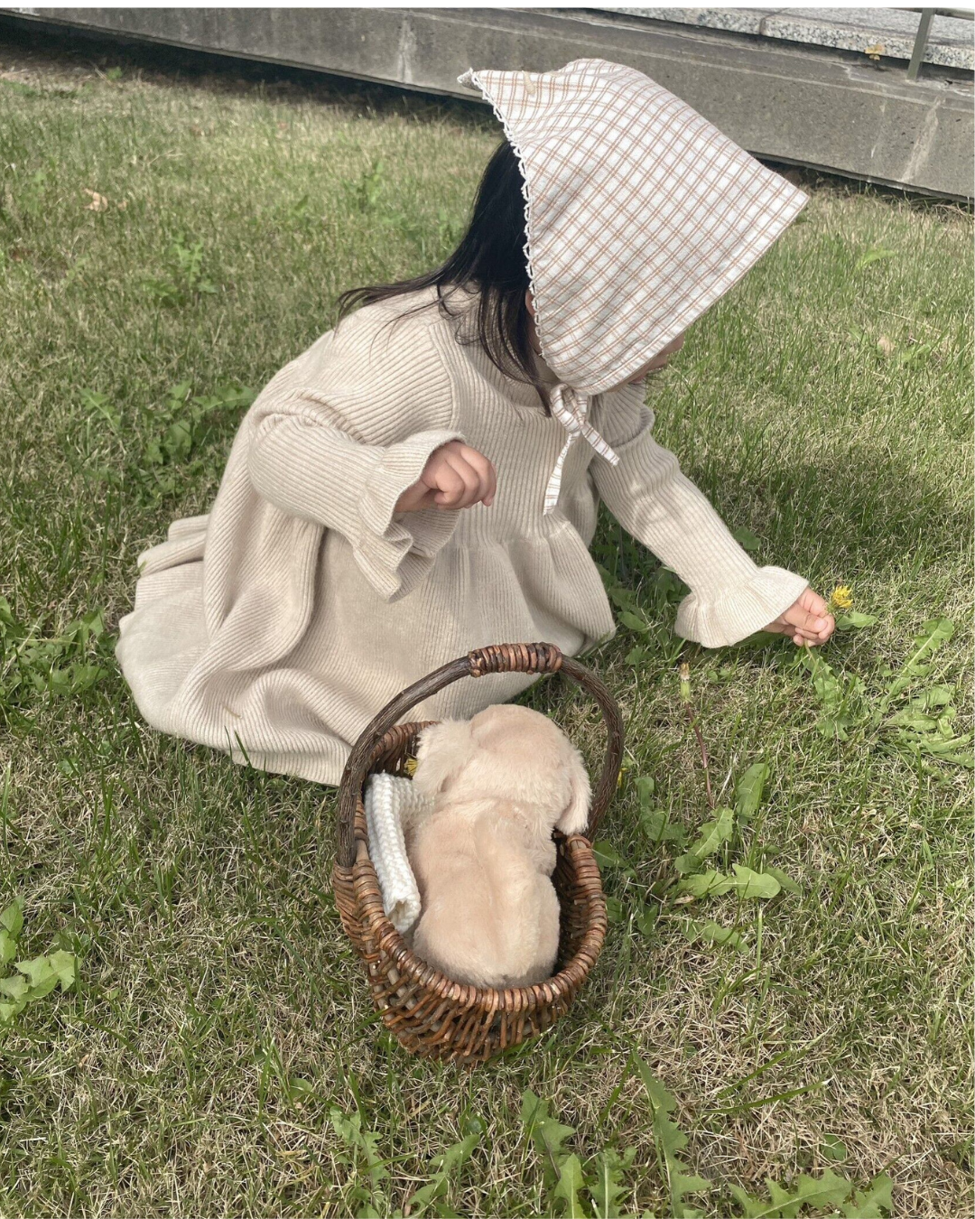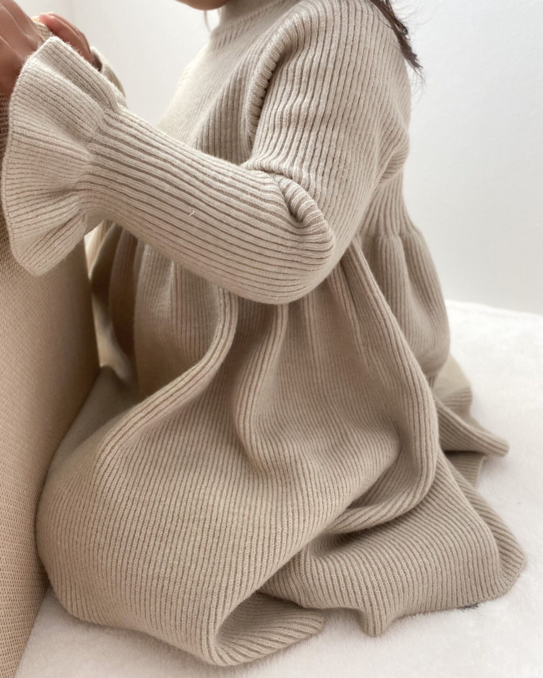 柔らかなリブ素材で仕立てた女の子らしいワンピース。ナチュラルな色合いがやさしい雰囲気を演出してくれます。