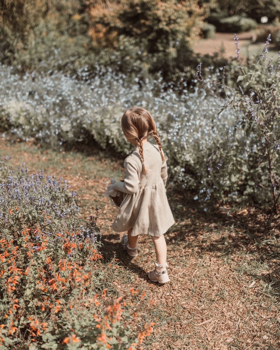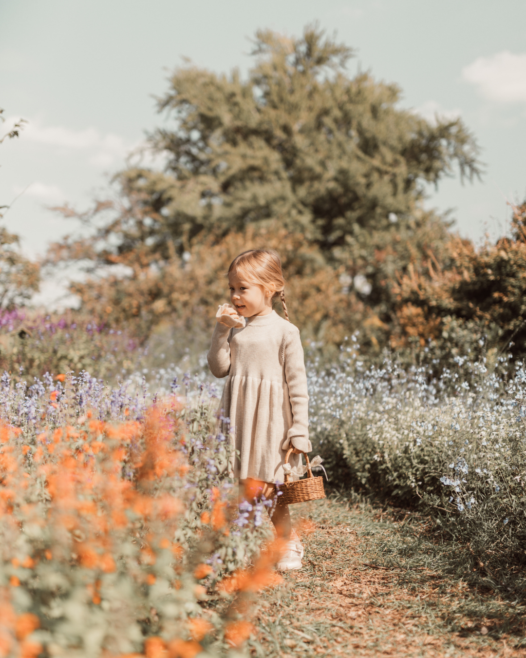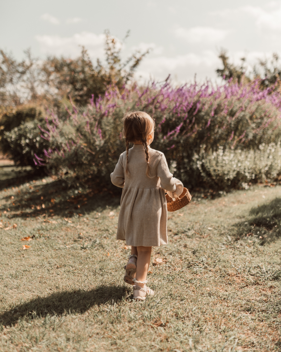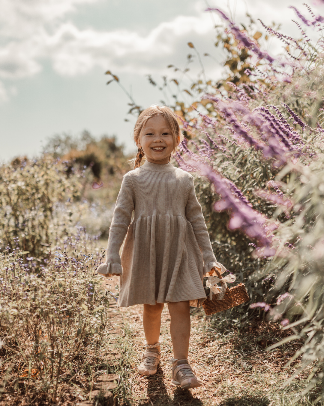 柔らかなリブ素材で仕立てた女の子らしいワンピース。ナチュラルな色合いがやさしい雰囲気を演出してくれます。