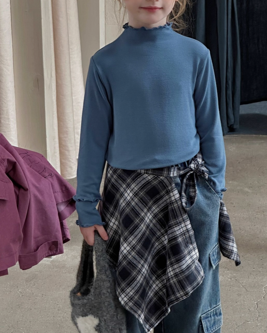シンプルながら首元のフリルがアクセントになったロンT。柔らかく伸縮性のある生地で、着心地も抜群。ワンピースやニットとのレイヤードスタイルにもぴったりです。