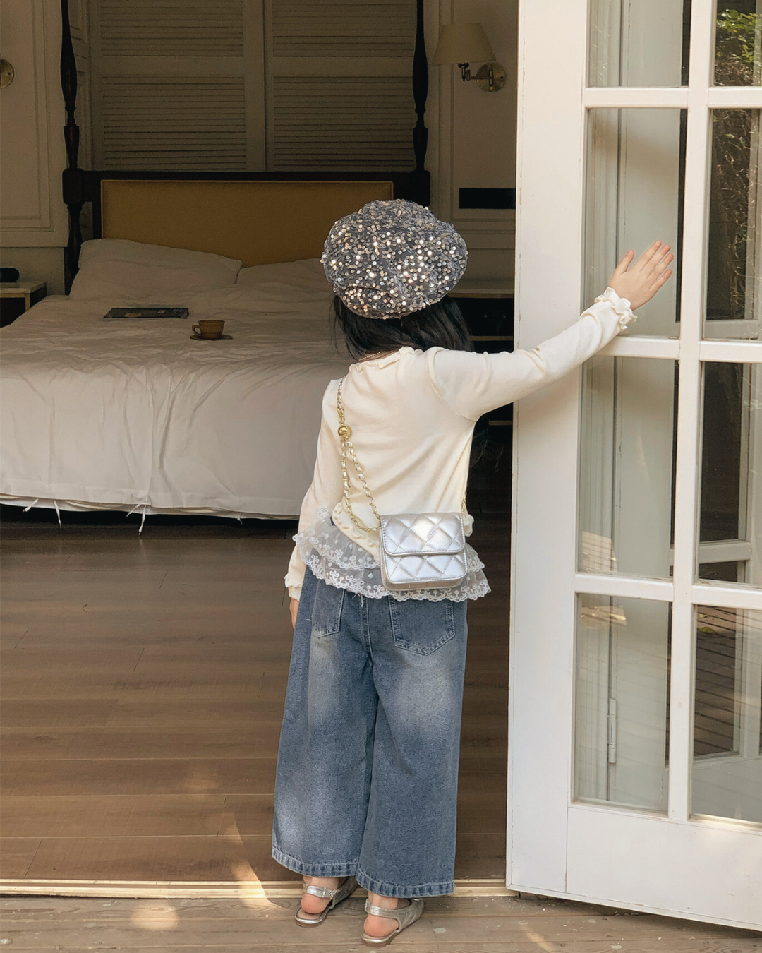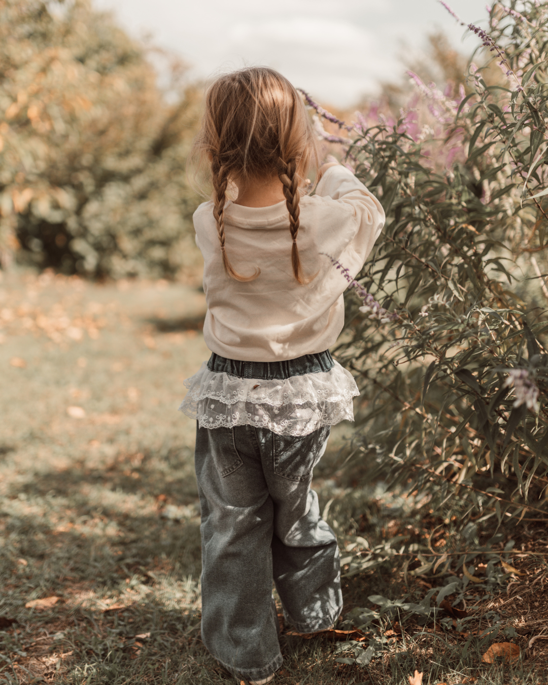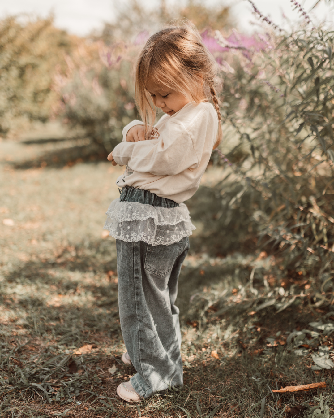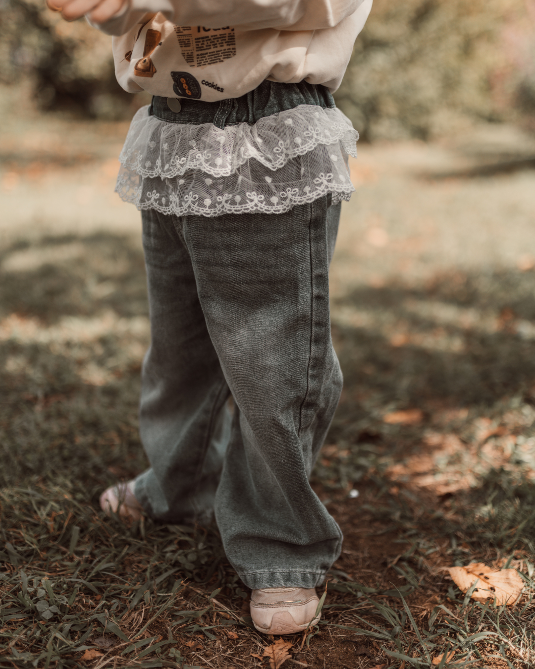 デニムなのに女の子らしさ満点♡ 裾にふんわりレースがあしらわれたデニムパンツ。シンプルなトップスと合わせても、コーデが一気に華やかに仕上がります。カジュアルもガーリーも楽しめる万能アイテムです♡