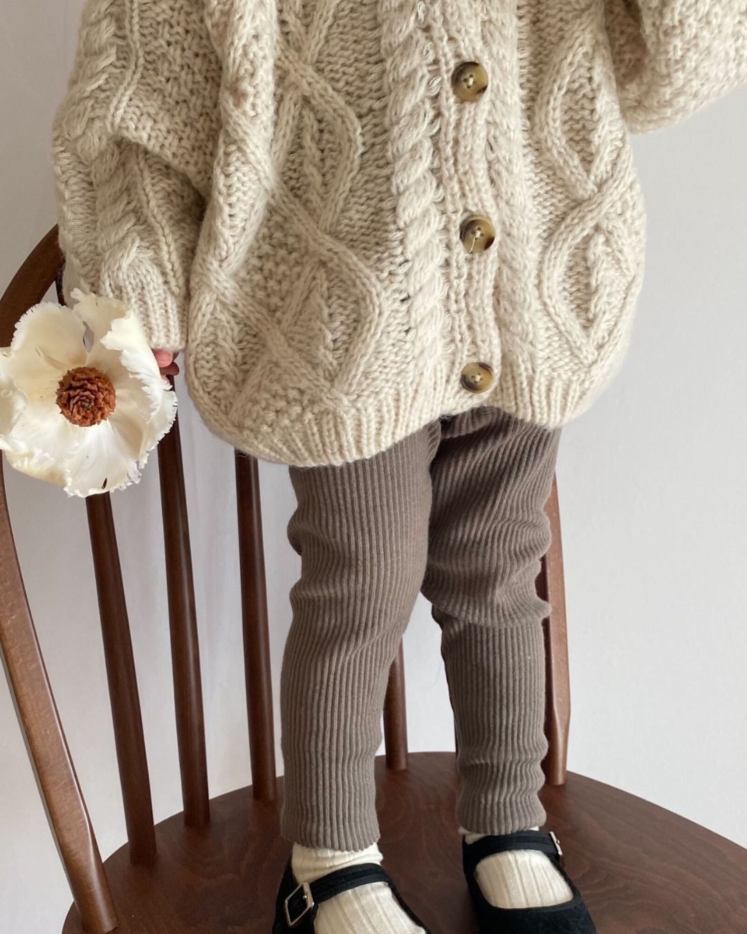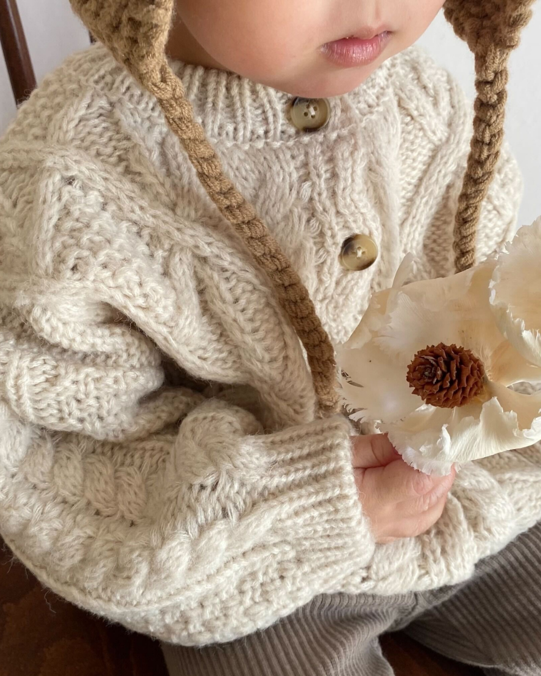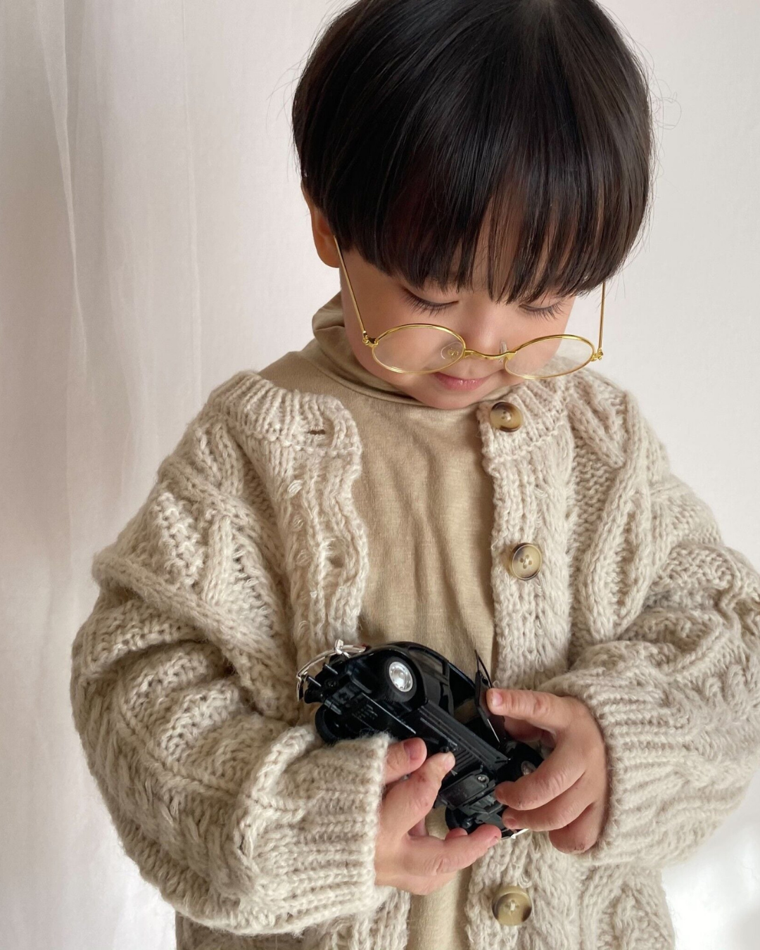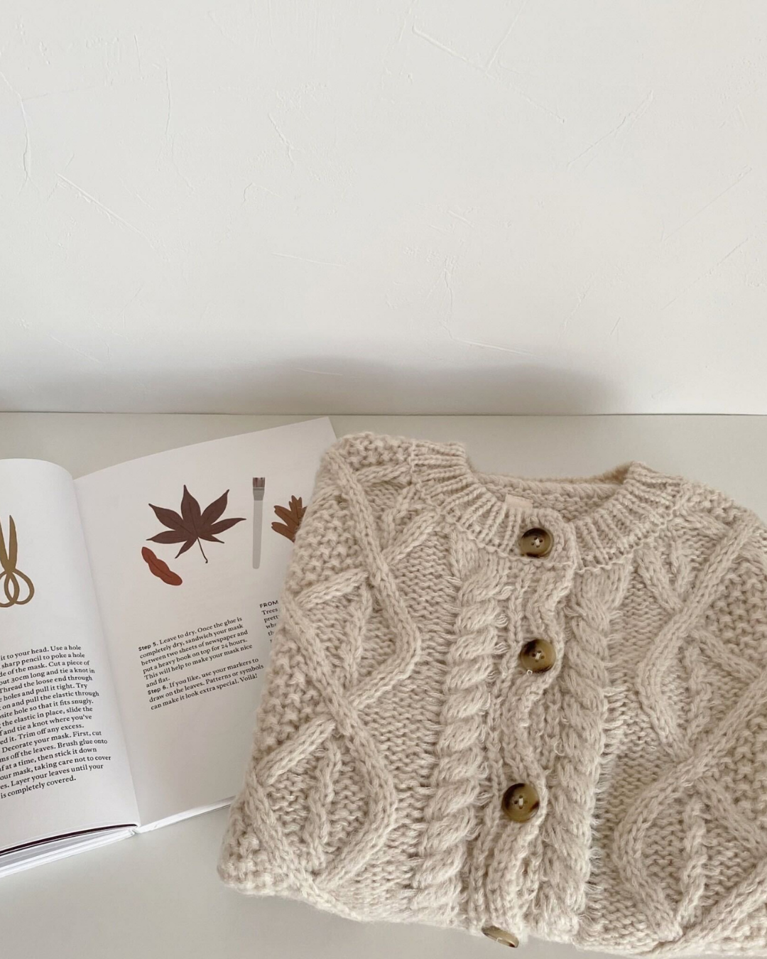 ゆったりシルエットで、ほどよい抜け感とあたたかさを両立。どんなコーデにも合わせやすいナチュラルベージュの色味で、季節を問わず大活躍してくれます。おしゃれな木ボタンがアクセントになり、前を開けても閉めても可愛いシルエットに♡