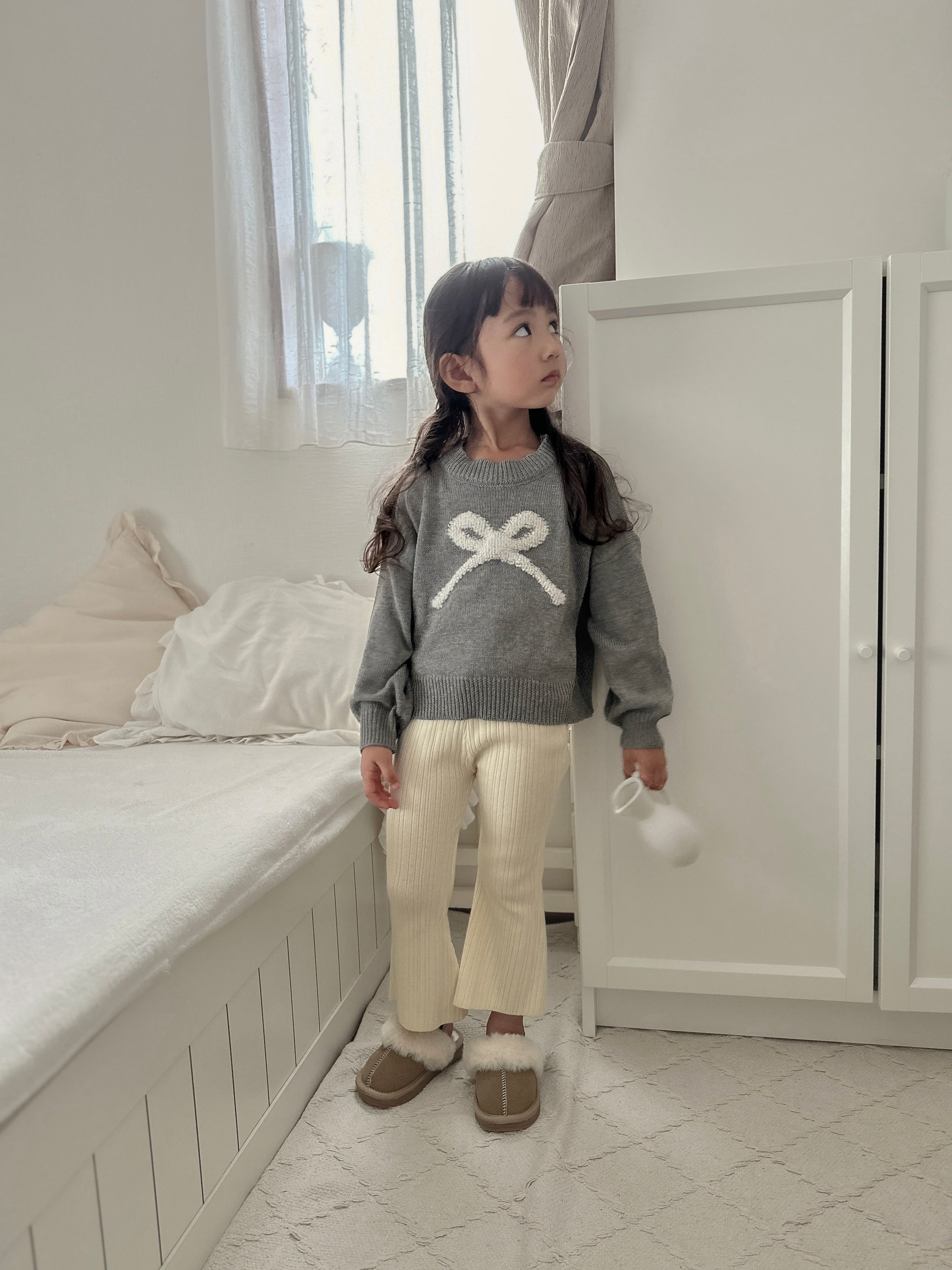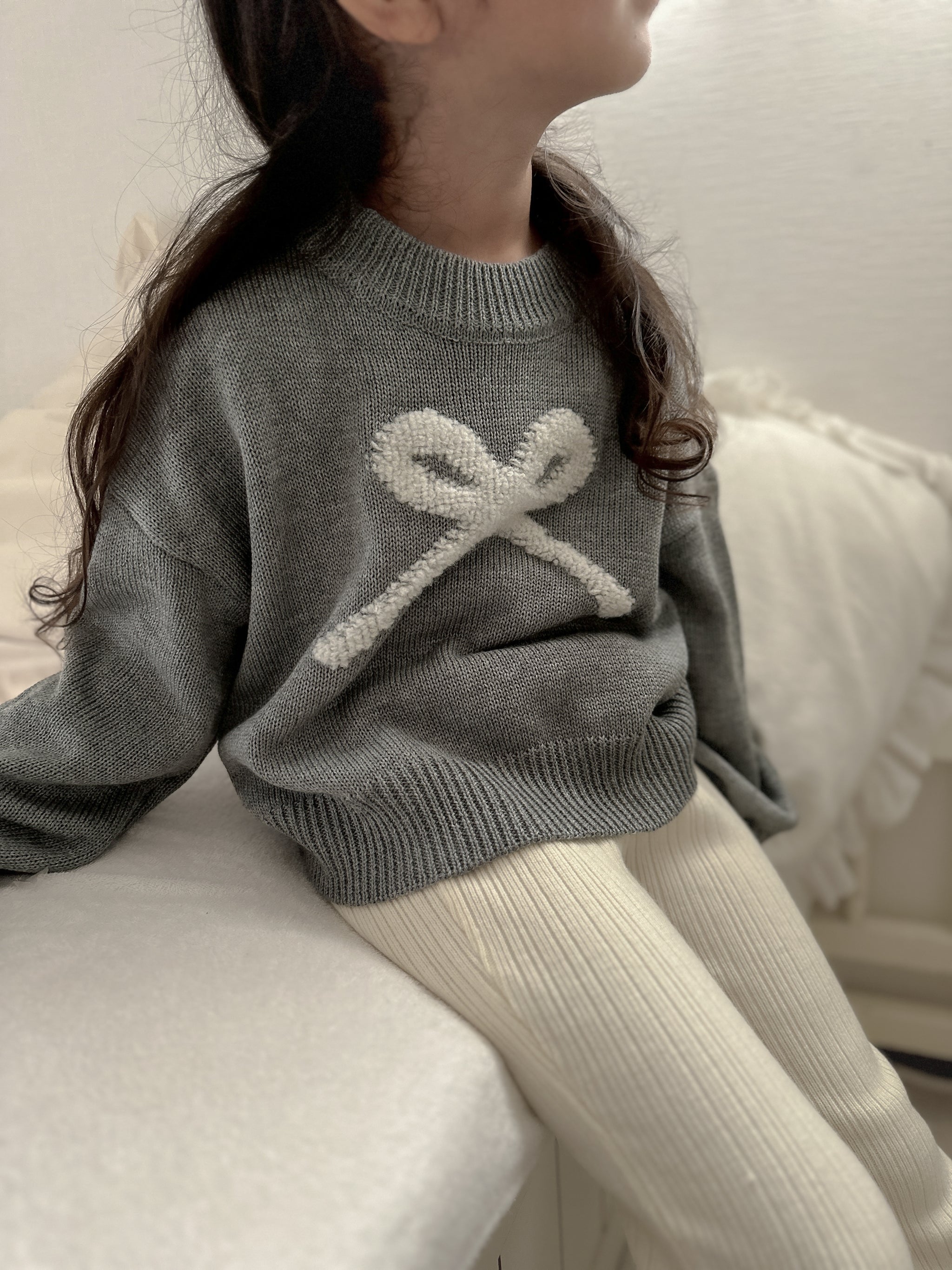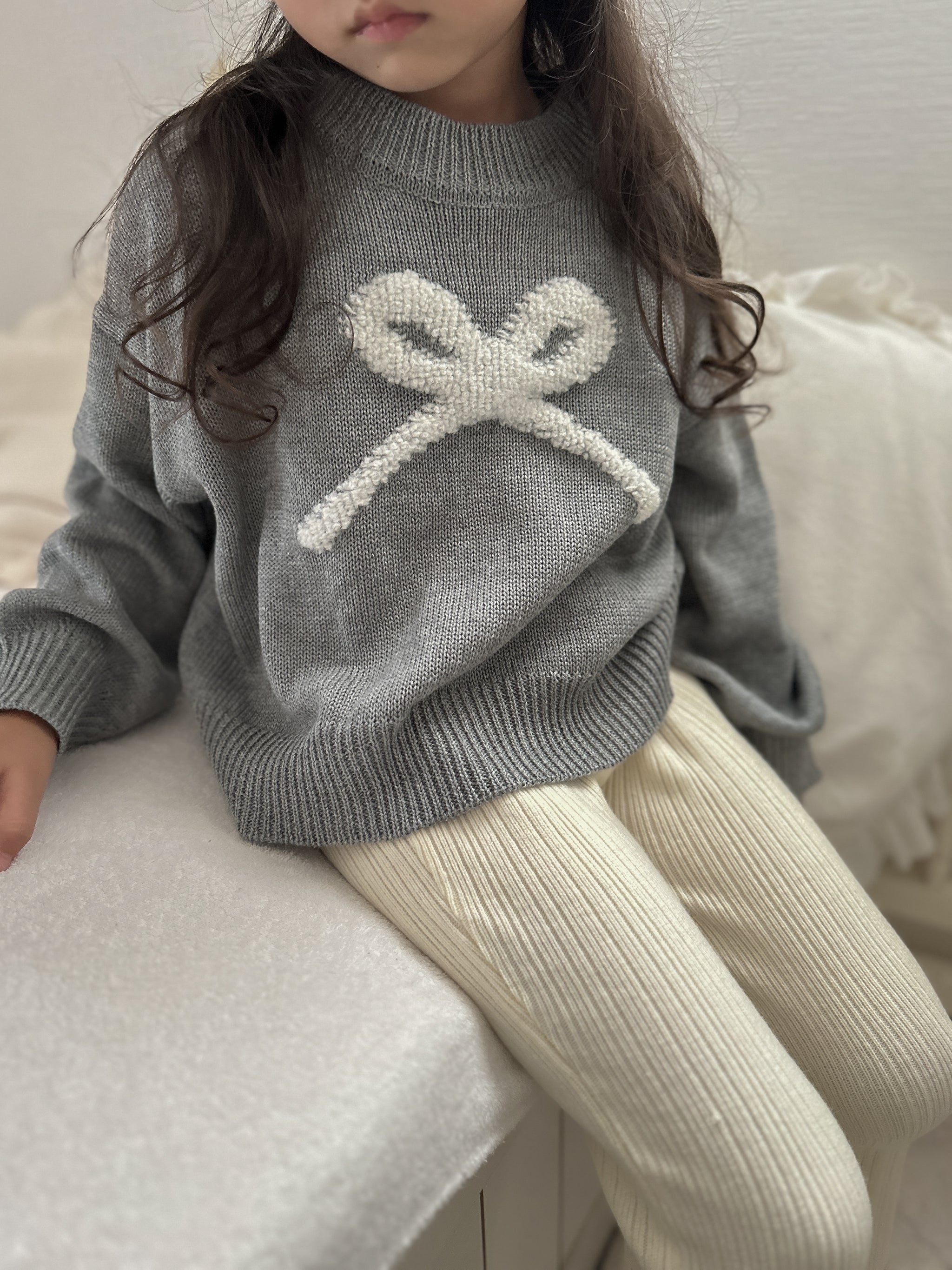ふんわりと浮かぶリボンモチーフが目を惹く、主役級のリボンニット。