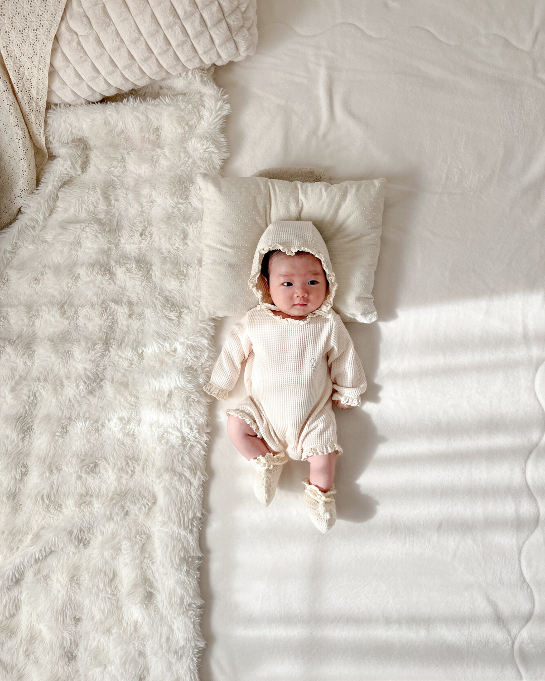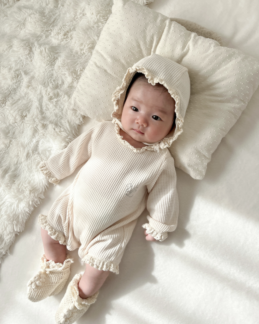 赤ちゃんの“はじめてのお洋服”にぴったりな、ululuオリジナルのワッフルロンパース🕊️